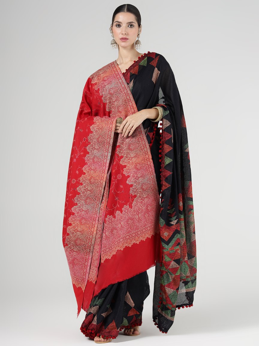 Antique Kashmiri Kani Stole with Sarvosk for Women - Crimson Red