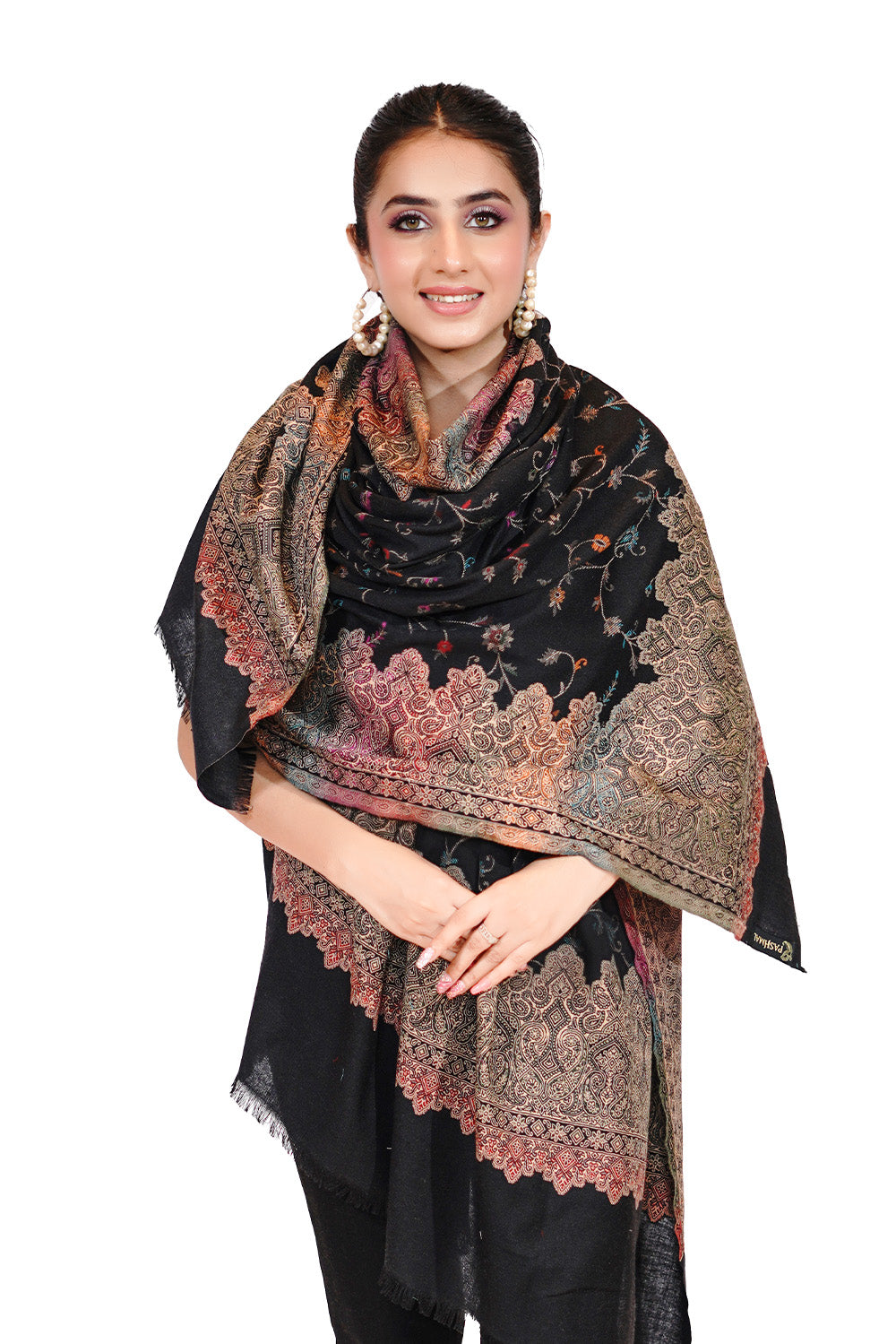 Faux Pashmina Gulabdar Traditional Kani Shawl - Classic Black | Full Size, Extra Soft