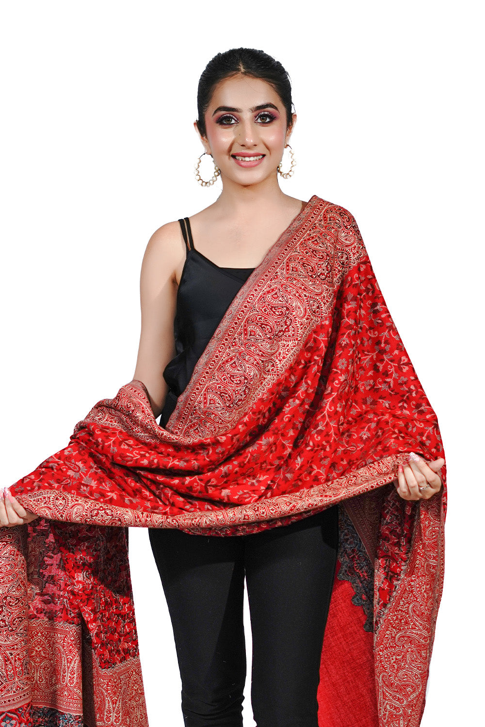 Faux Pashmina Gulabdar Traditional Kani Shawl - Crimson Red | Full Size, Extra Soft