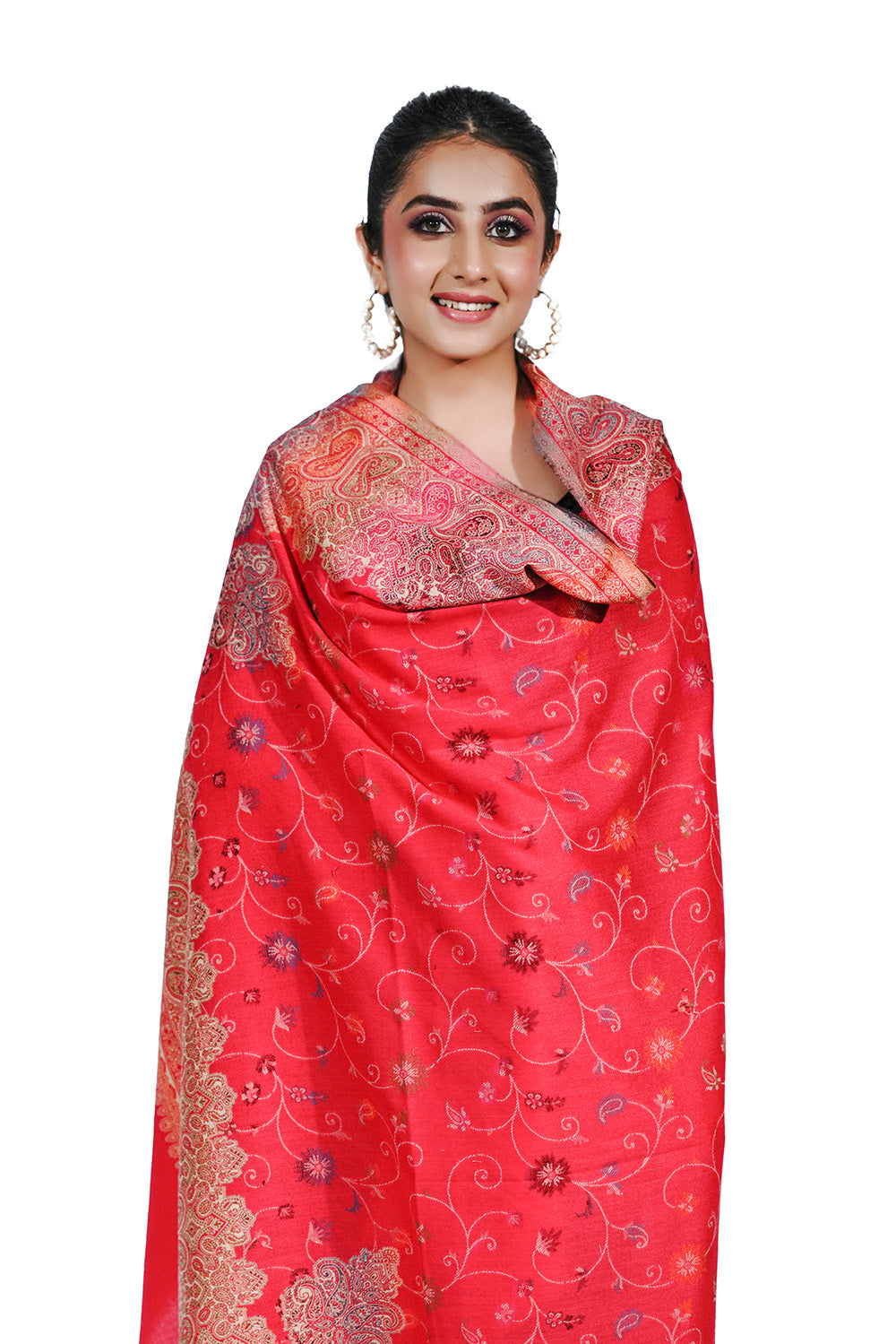 Faux Pashmina Traditional Jamawar Multy Shawl - Scarlet Red | | Full Size, Extra Soft
