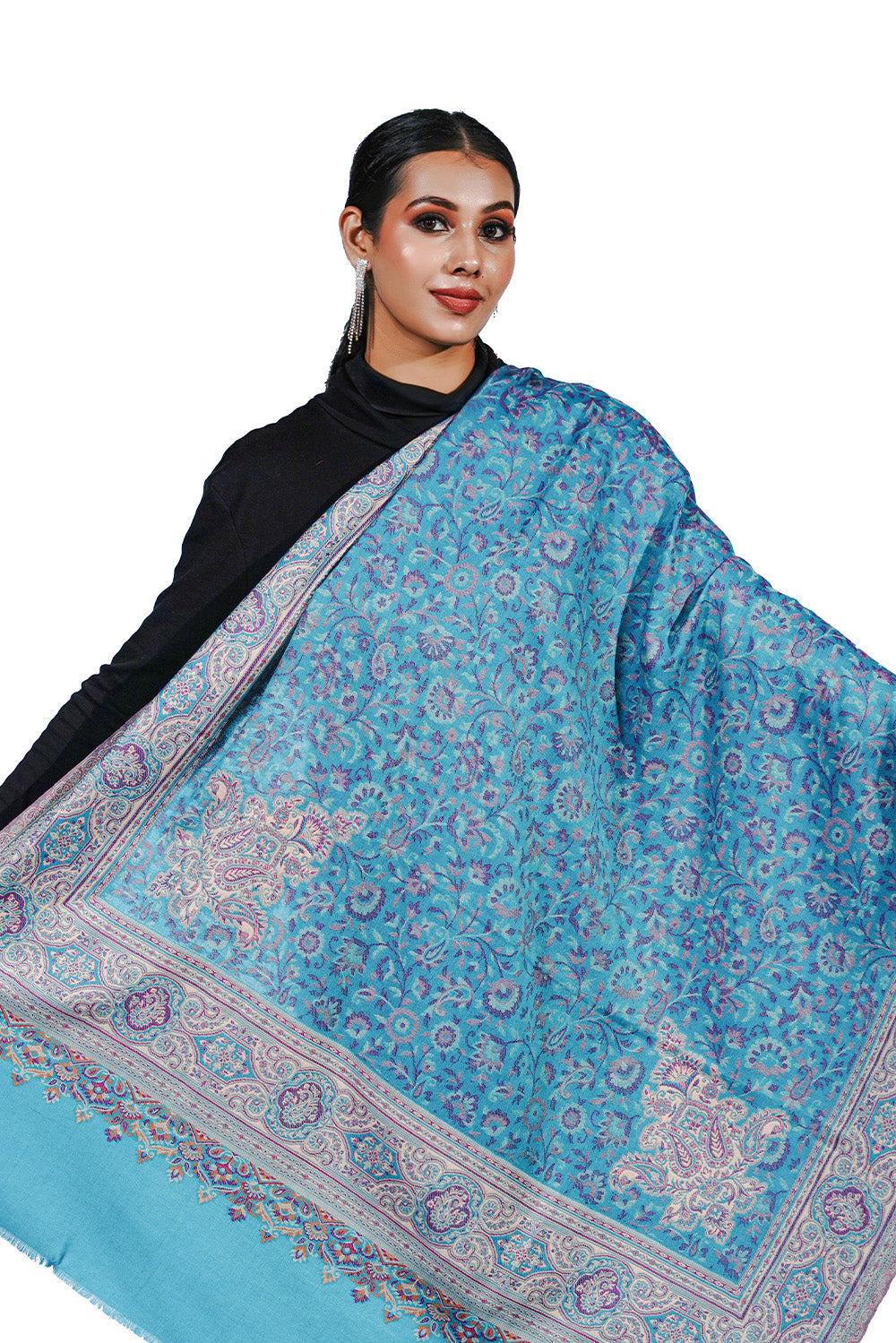 Faux Pashmina Traditional Jamawar Multy Shawl - Icy Blue | Full Size, Extra Soft