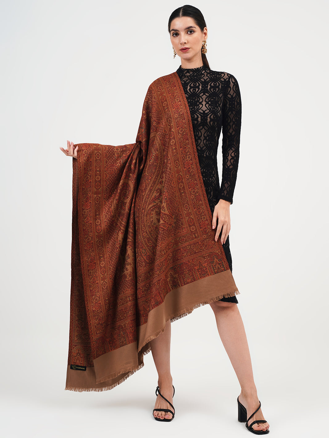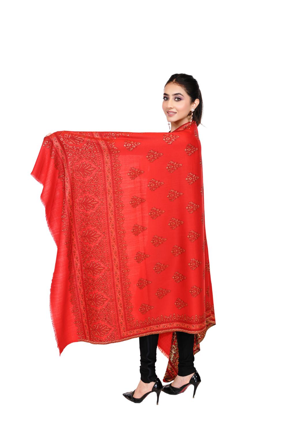Women's Traditional Woollen Jamawar Shawl with Zari Work- Crimson Charm | Ultra Soft & Warm