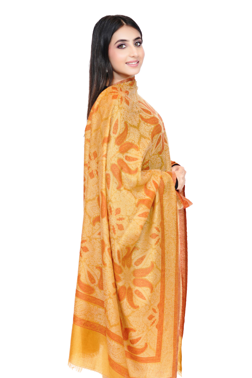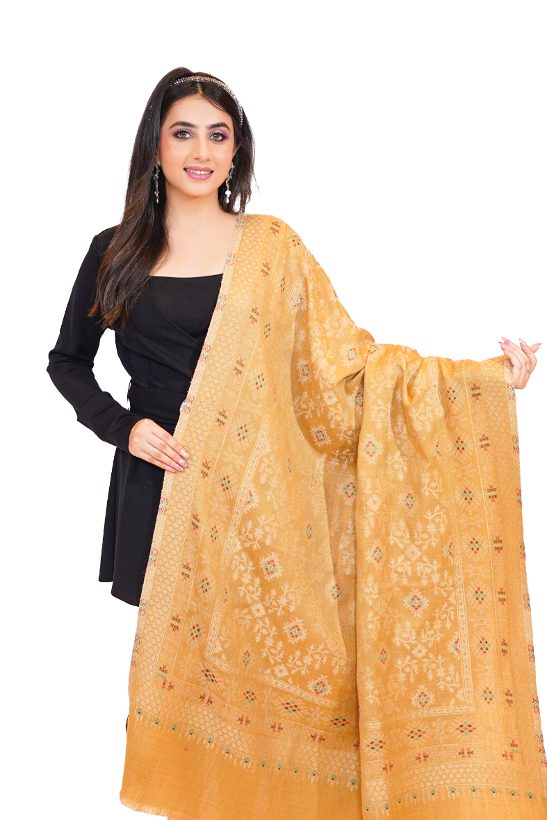 Women's Traditional Ethnic Weave Woollen Shawl - Vibrant Yellow | Full Size, Extra Soft & Lightweight