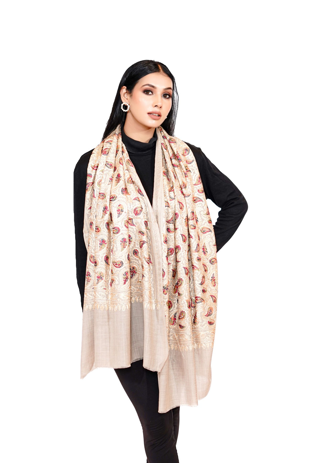 Traditional Aari Embroidered Woollen Stole for Women- Timeless White | Standard Size, Ultra Soft Wrap
