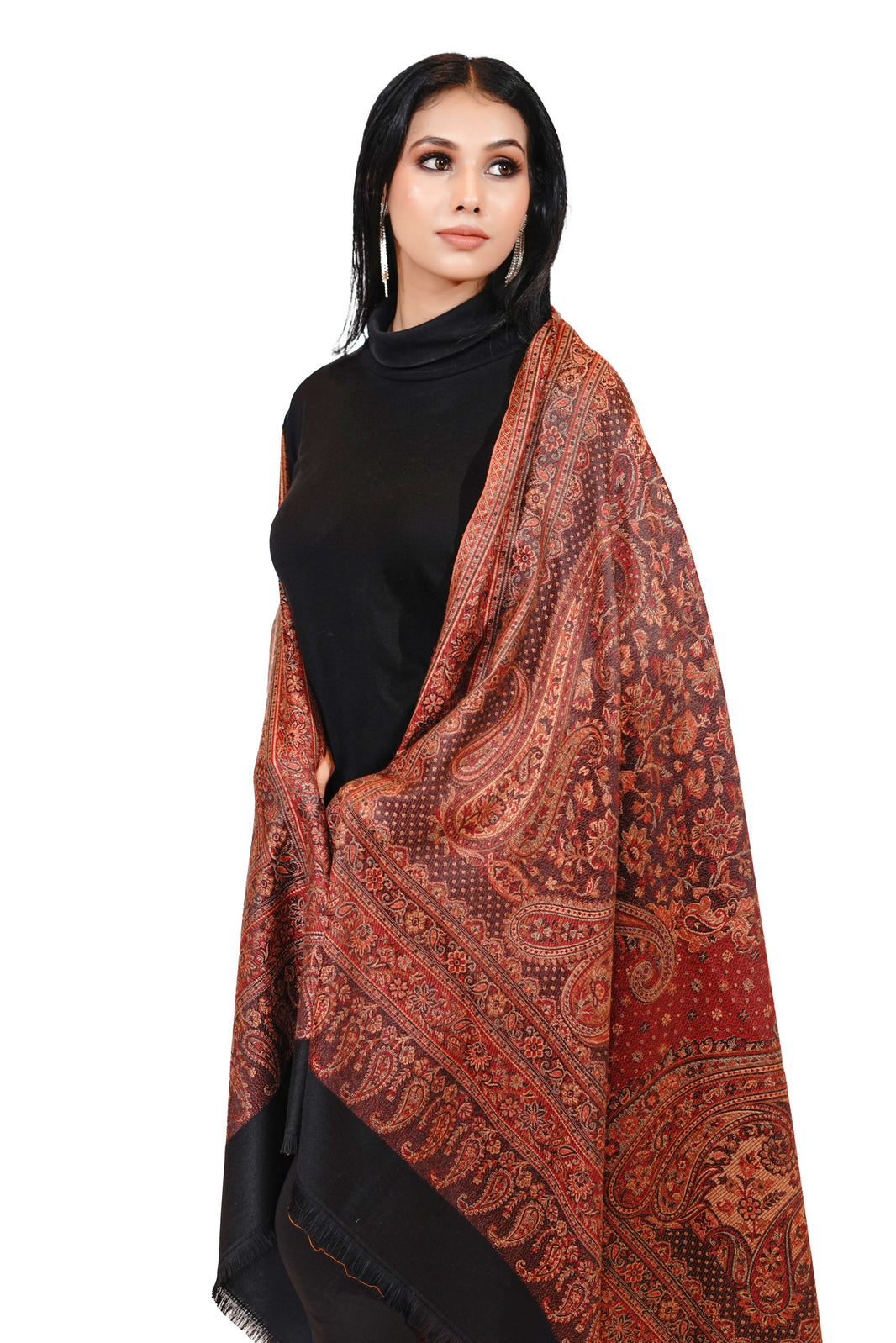 Women's Traditional Faux Pashmina Shawl- Black & Maroon Mosaic | Extra Soft & Lightweight