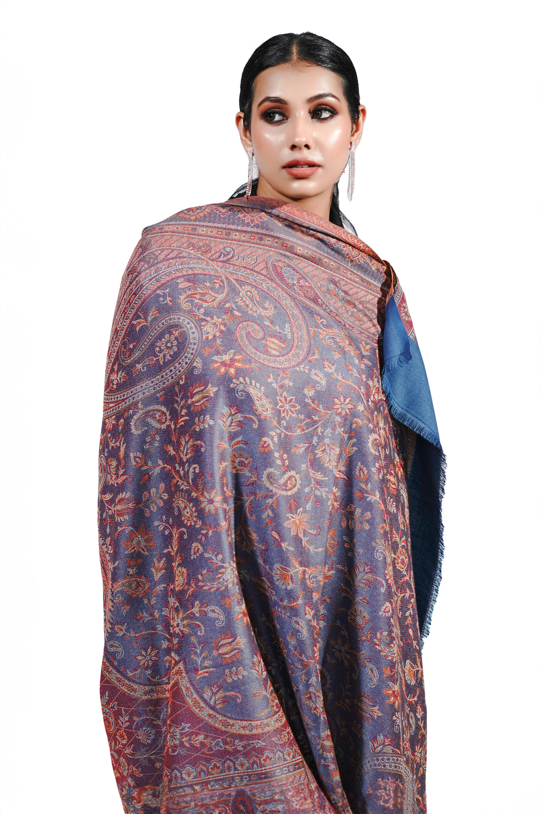 Women's Traditional Faux Pashmina Shawl- Blue Regalia | Extra Soft & Lightweight