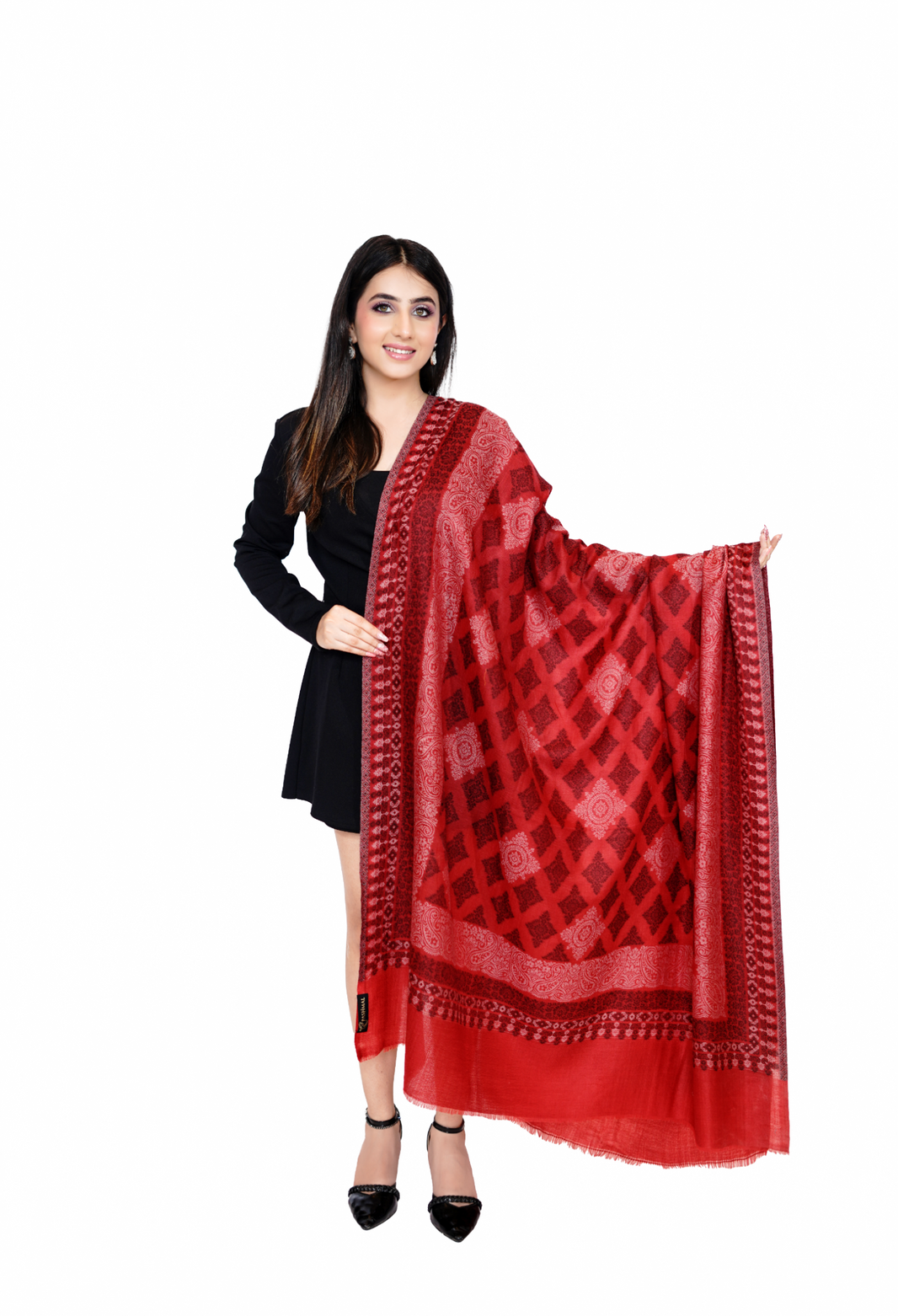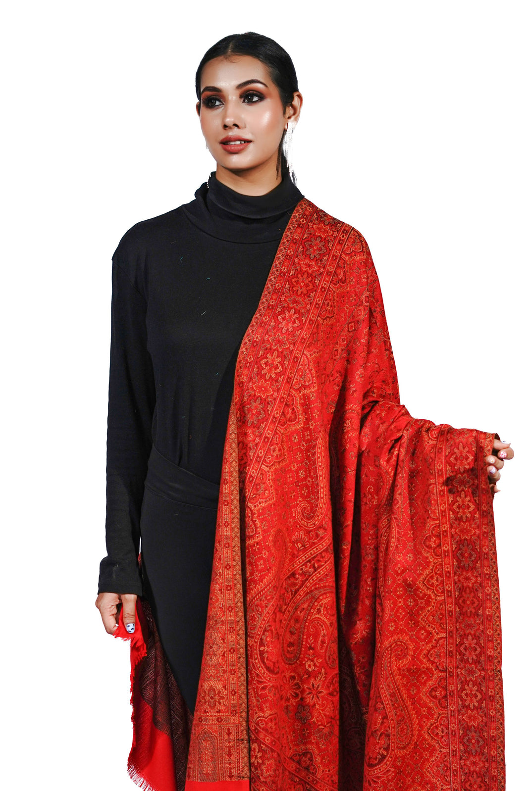 Women's Traditional Ethnic Weave Woollen Shawl - Ethereal Red | Full Size, Extra Soft & Lightweight