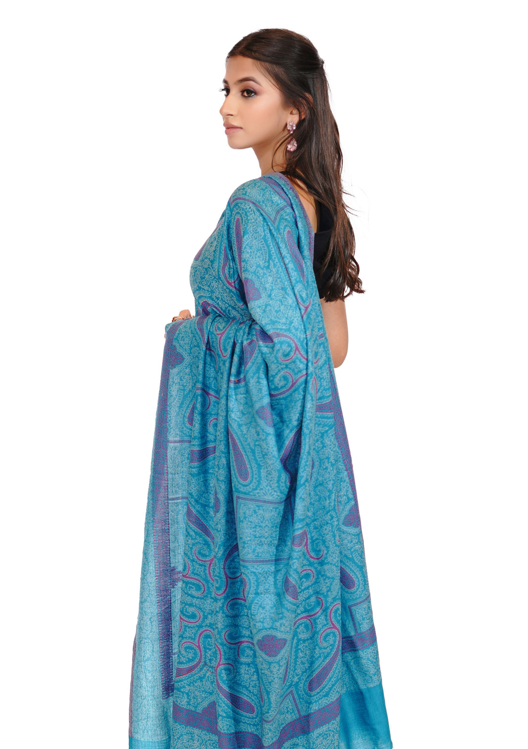 Women's Traditional Ethnic Weave Woollen Shawl - Breezy Blue | Full Size, Extra Soft & Lightweight