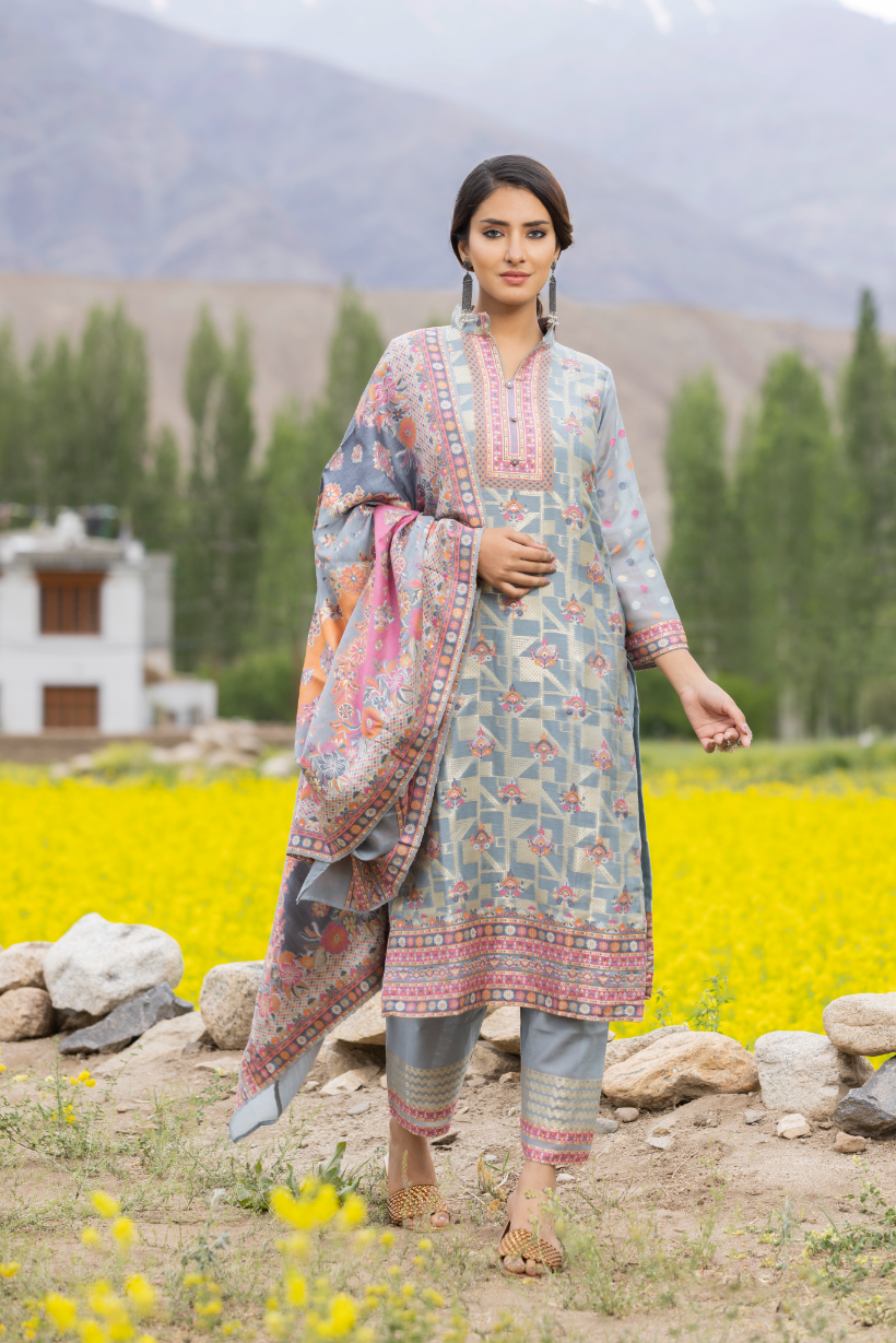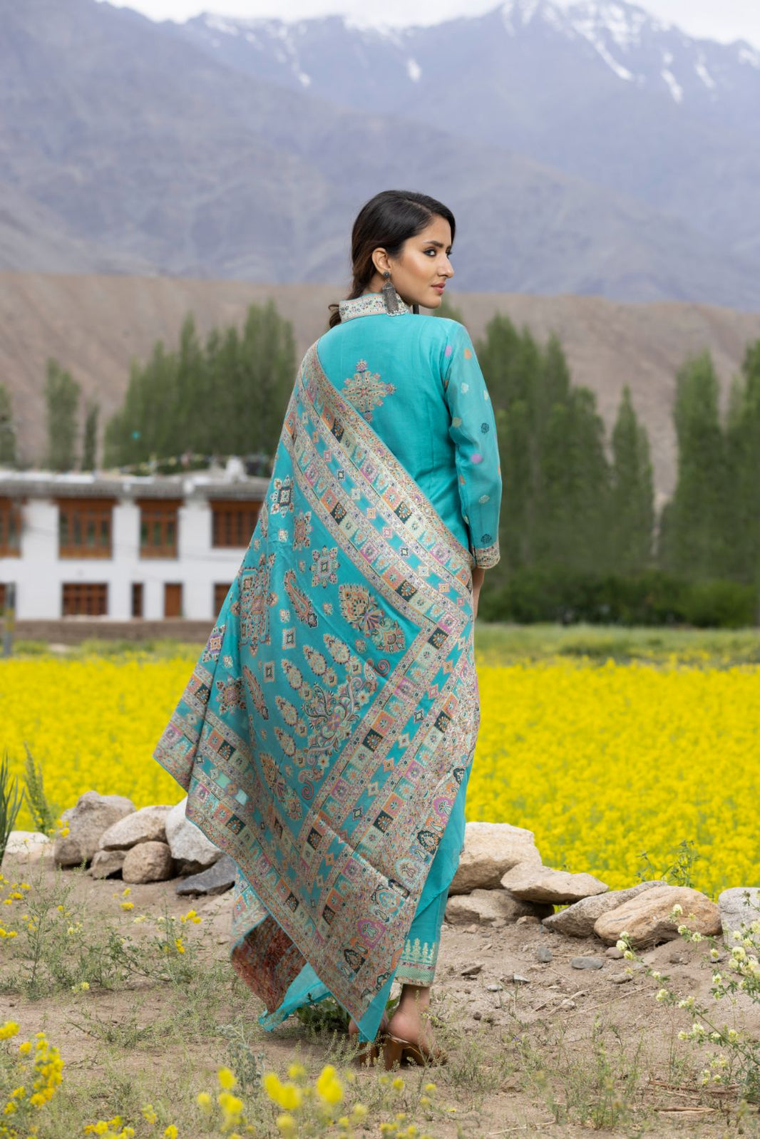 Traditional Kani Zari Suit For Women (Unstitched) - Pastel Blue | Premium Silk, Customizable