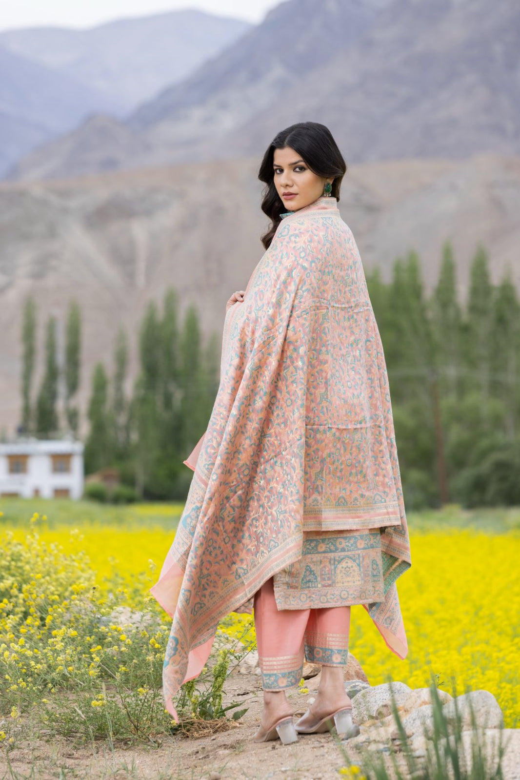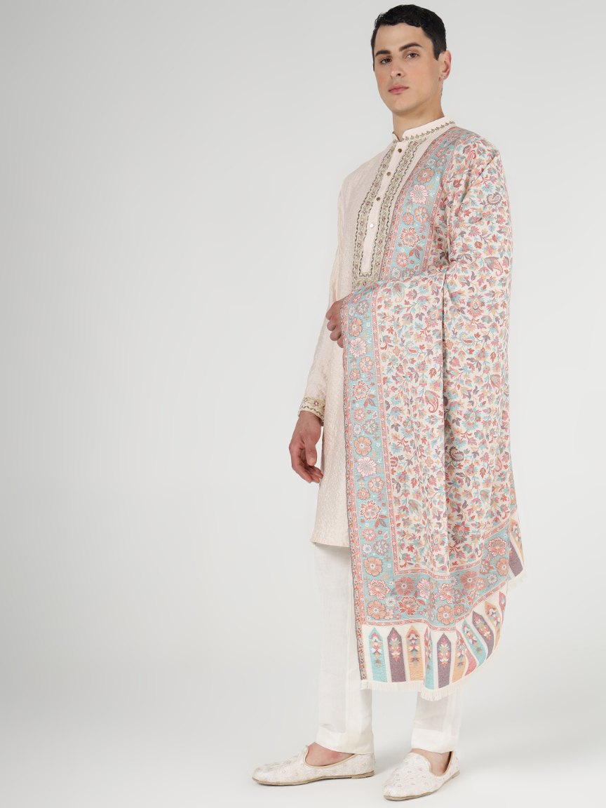 Men’s Fine Wool Blend Jamawar Kani Shawl – Pastel Palette | Full Size, Extra Soft & Warm