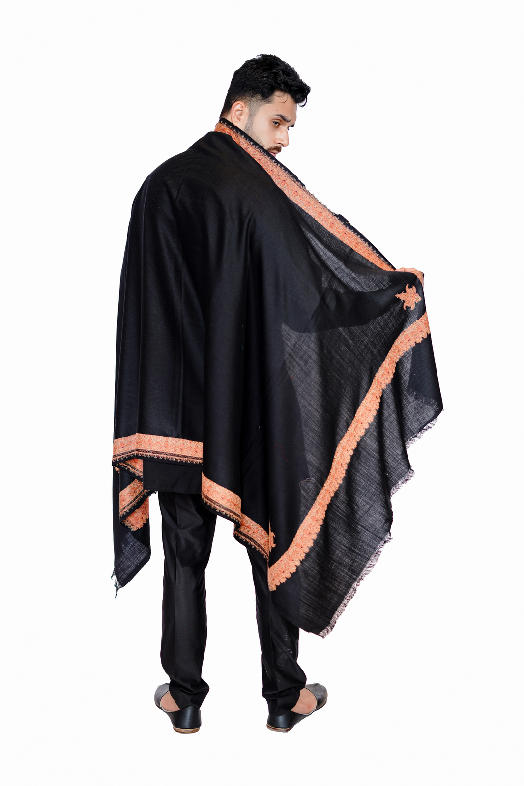 Hand-Embroidered Wool Blend Shawl for Men – Chick Charcoal/Classic Black | Full Size, Extra Soft & Warm