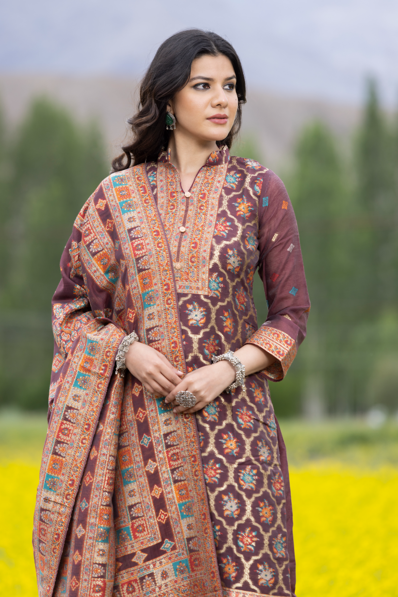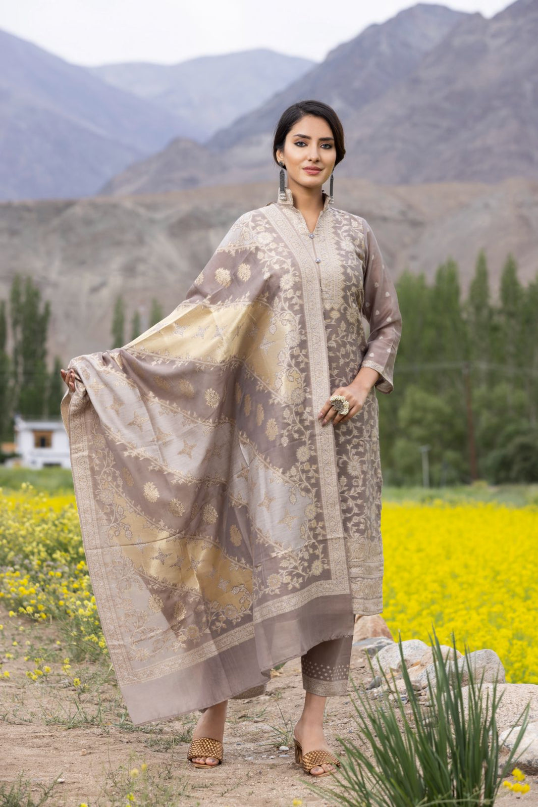Traditional Kani Zari Suit For Women (Unstitched) - Subtle Fawn | Premium Silk, Customizable