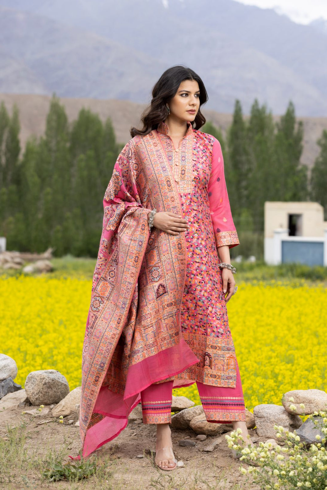 Traditional Kani Zari Suit For Women (Unstitched) - Romantic Pink | Premium Silk, Customizable