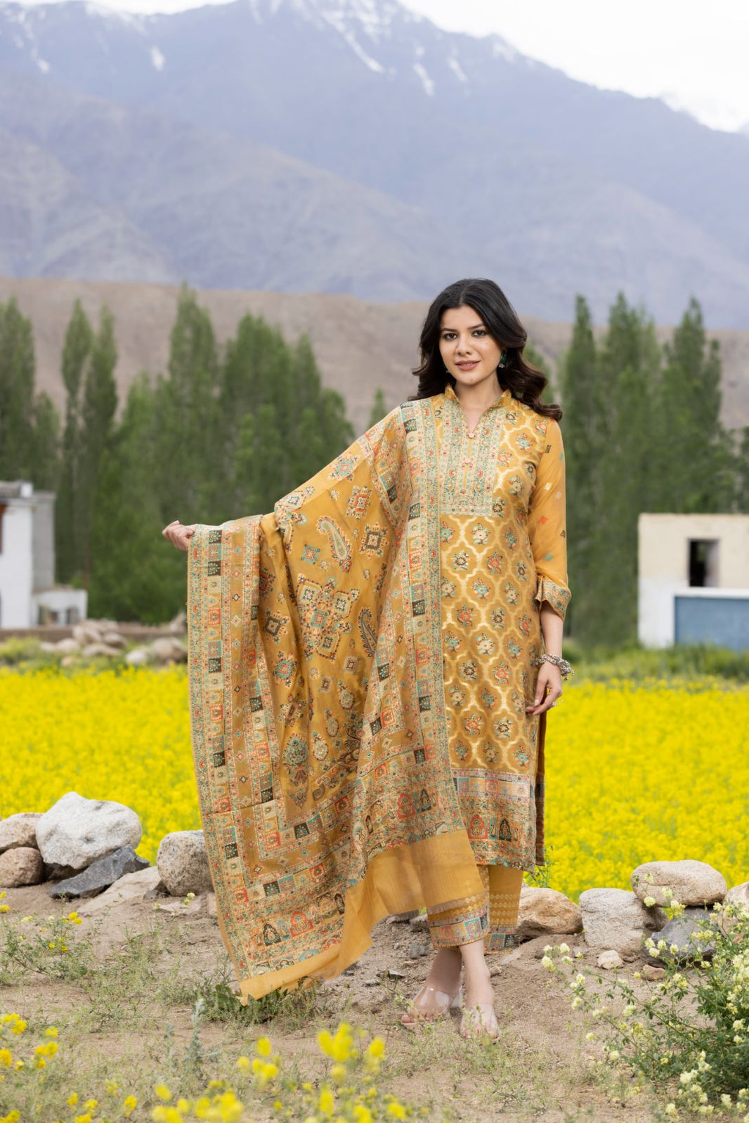 Traditional Kani Zari Suit For Women (Unstitched) - Mellow Yellow | Premium Silk, Customizable