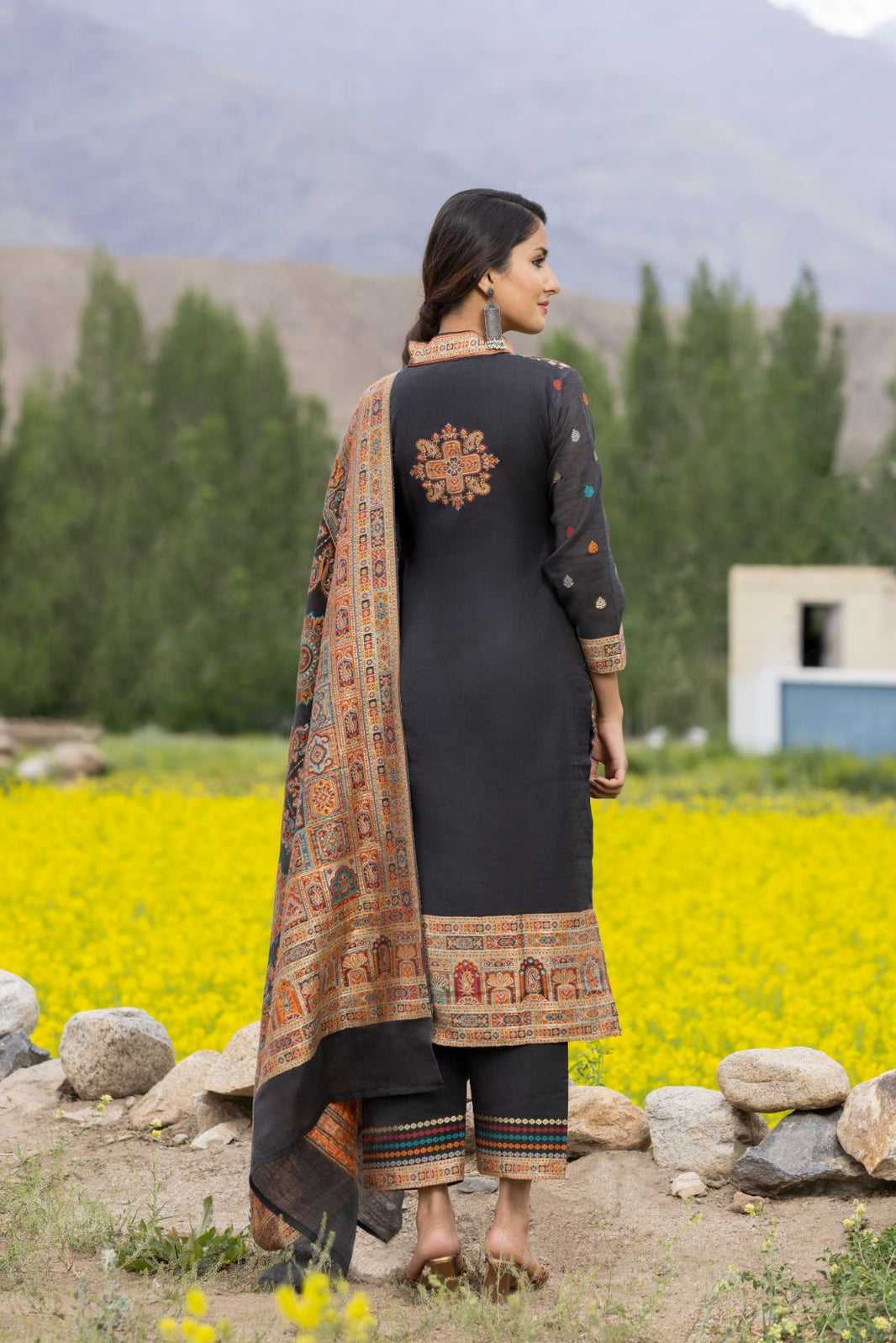 Traditional Kani Zari Suit For Women (Unstitched) - Dramatic Black | Premium Silk, Customizable