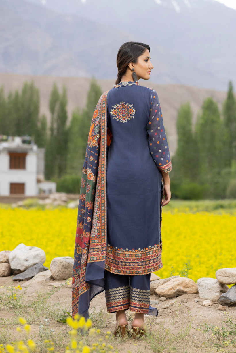 Traditional Kani Zari Suit For Women (Unstitched) - Ink Blue | Premium Silk, Customizable