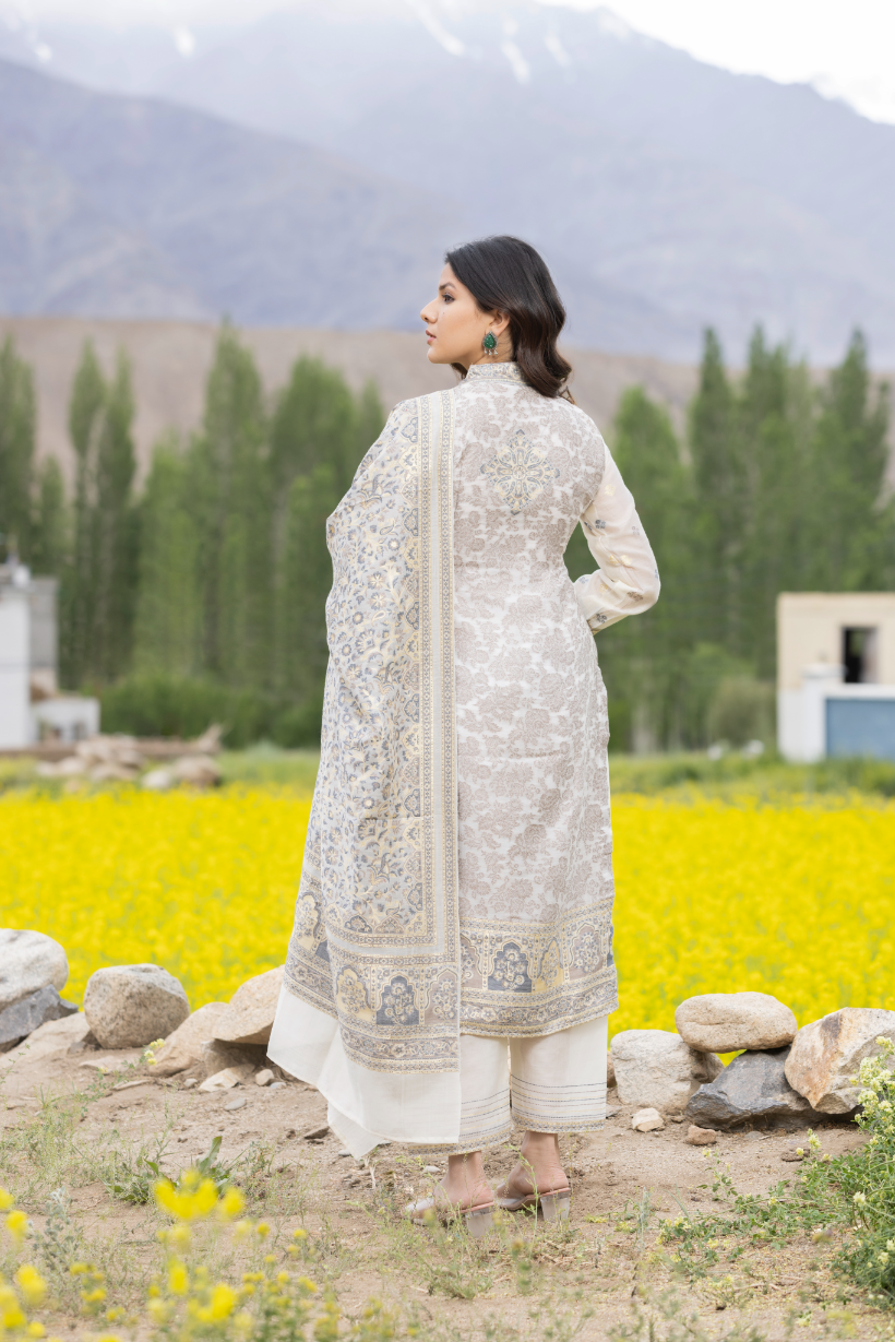 Traditional Kani Zari Suit For Women (Unstitched) - Ivory Indian Silk | Premium Silk, Customizable
