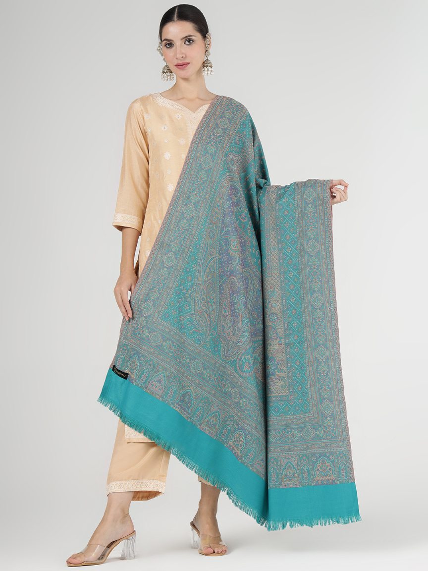 Faux Pashmina Traditional Kalamkari Shawl – Emerald Intrigue