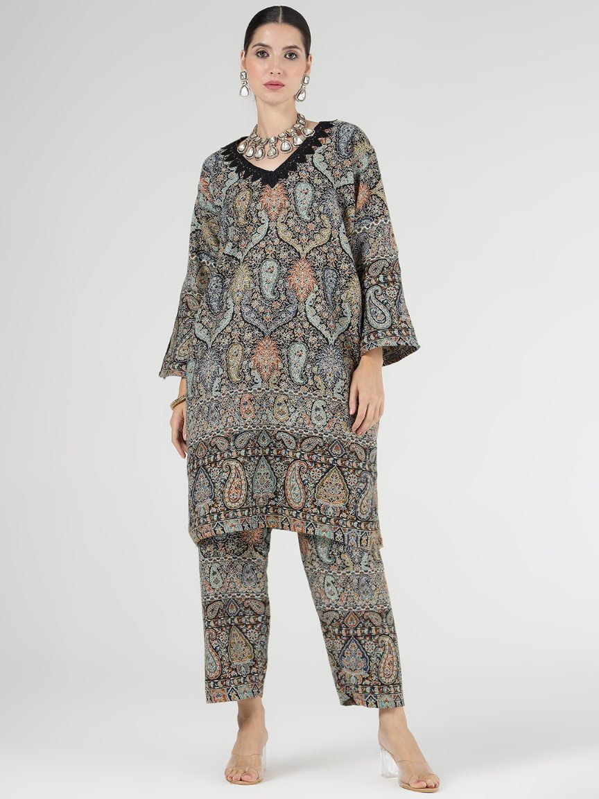 Traditional Kalamkari Unstitched Suit for Women - Faux Pashmina Paisley Elegance