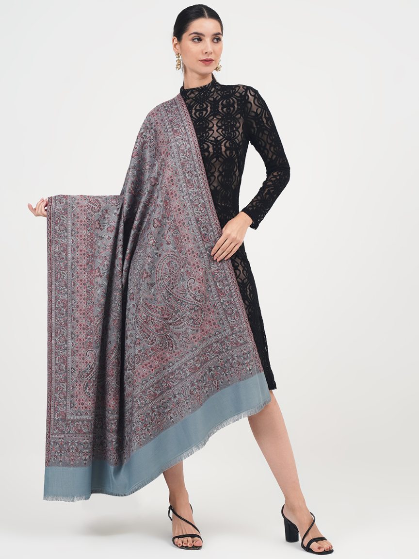Faux Pashmina Traditional Paisley Jamawar Shawl - Midnight Grace