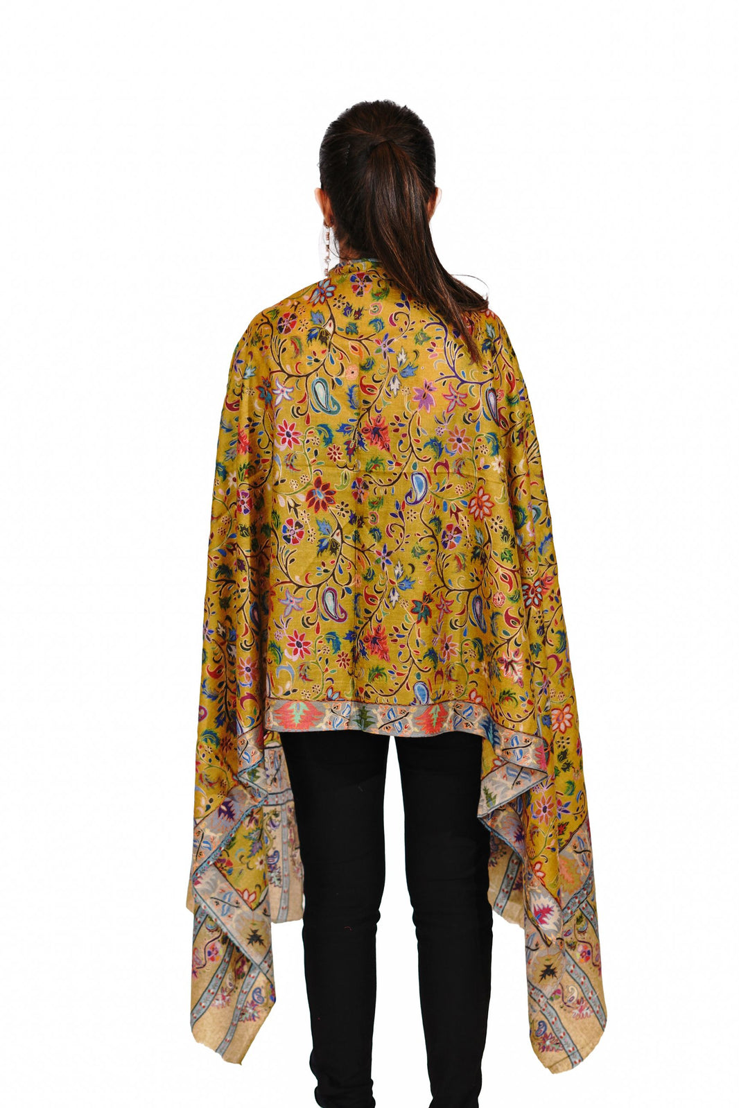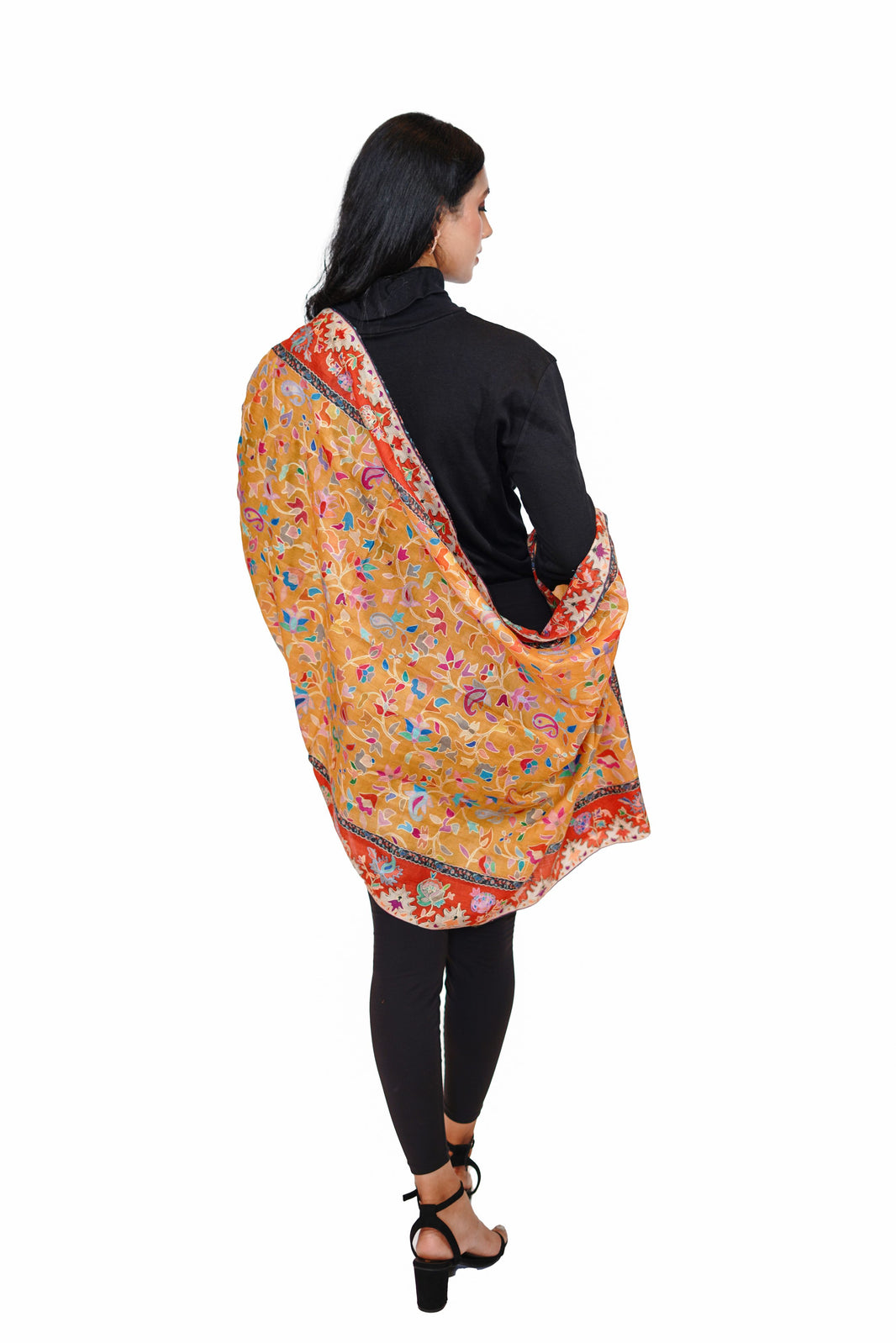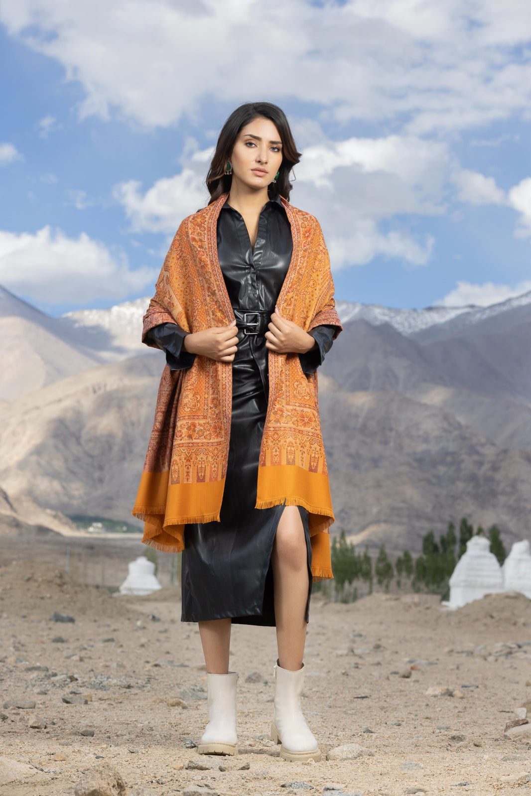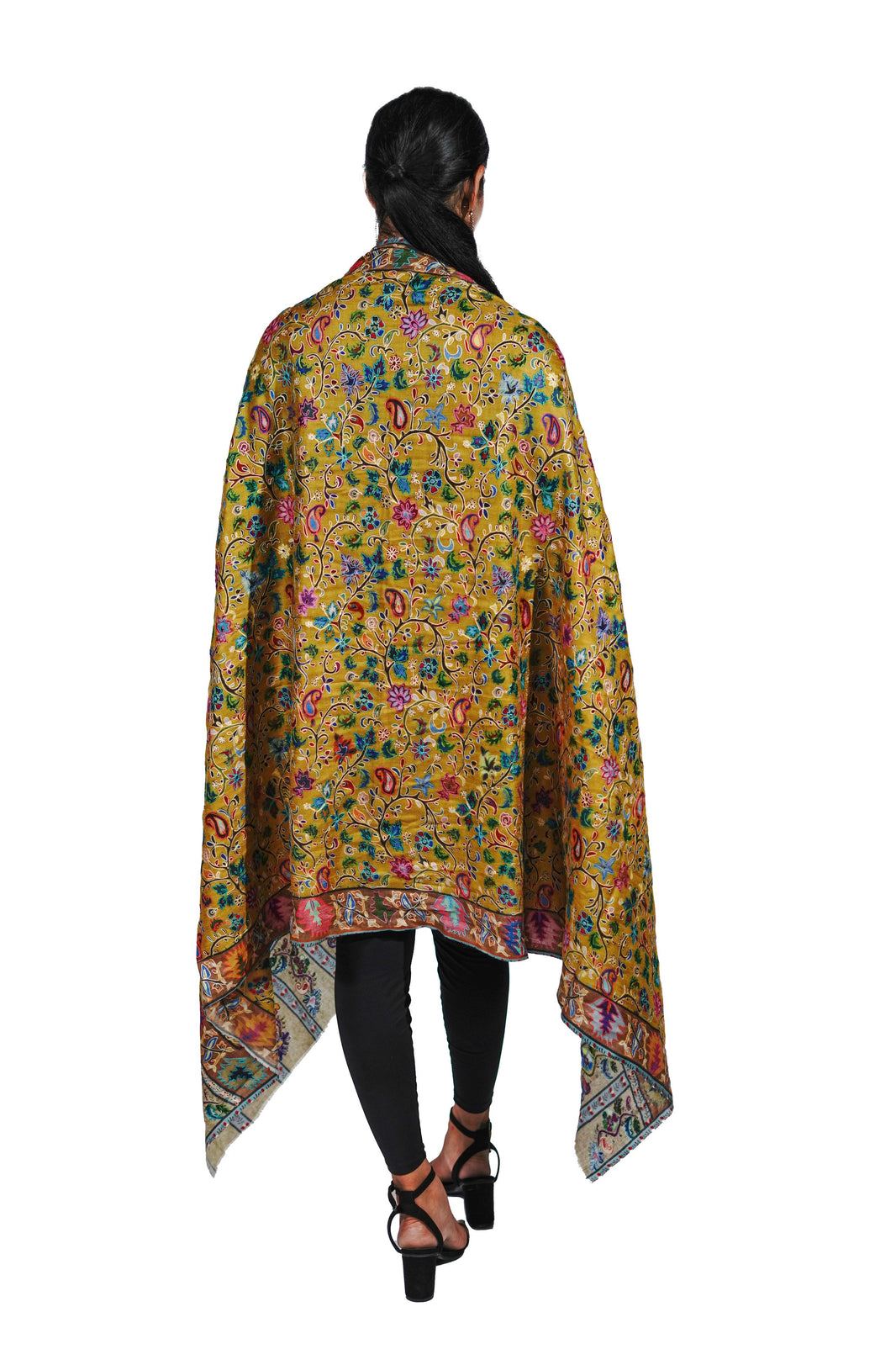 Heritage Amber-Yellow Embroidered Printed Shawl for Women
