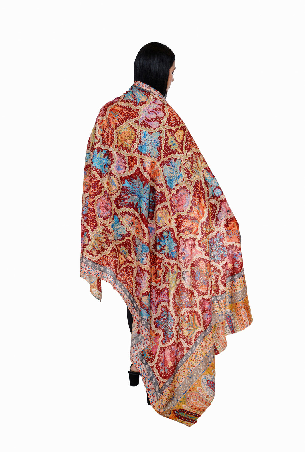 Heritage Rustic Red Embroidered Printed Shawl for Women