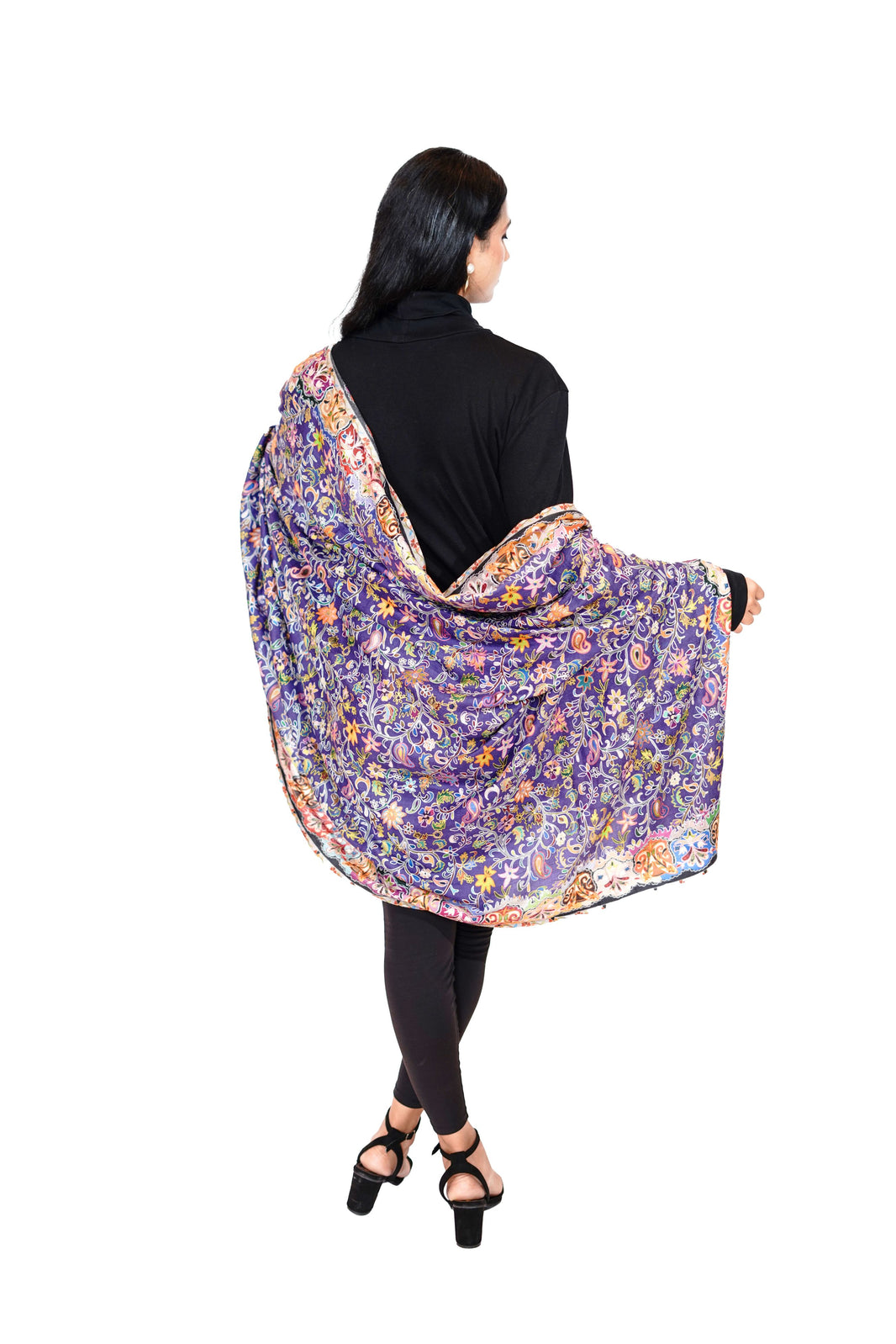 Heritage Rich Purple Embroidered Printed Shawl for Women