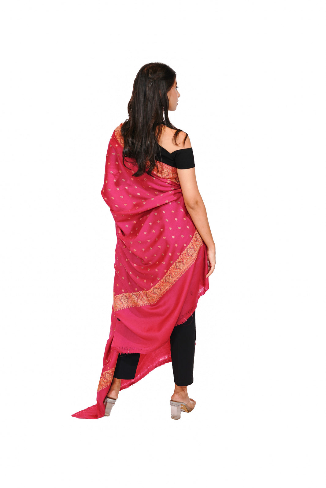 Heritage Pink Booti Embroidered Woollen Shawl for Women
