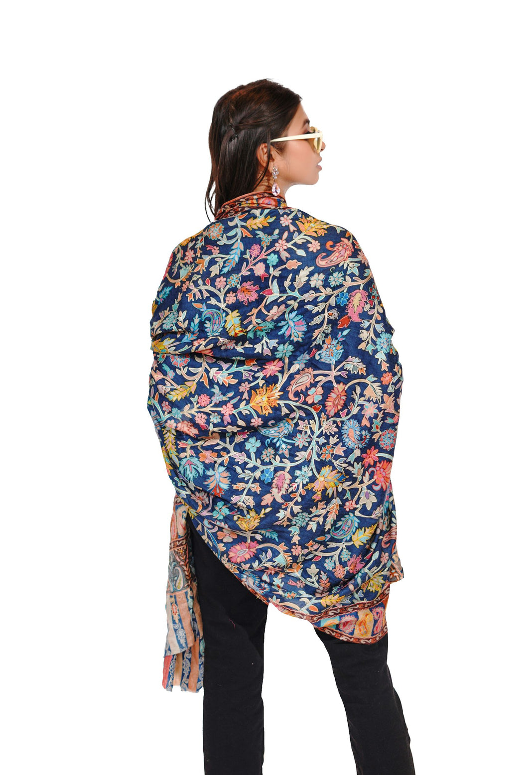 Heritage Royal Blue Embroidered Printed Shawl for Women