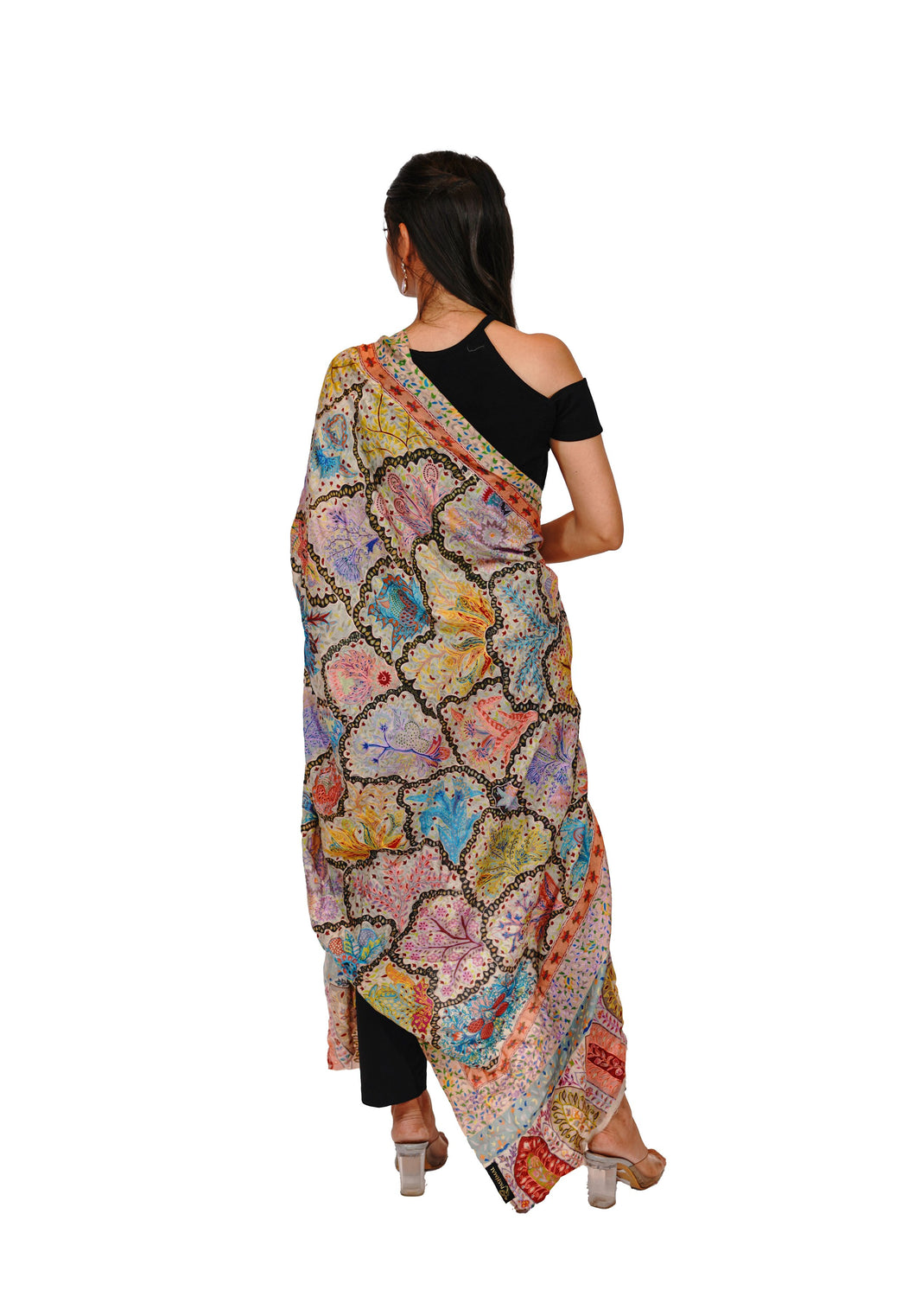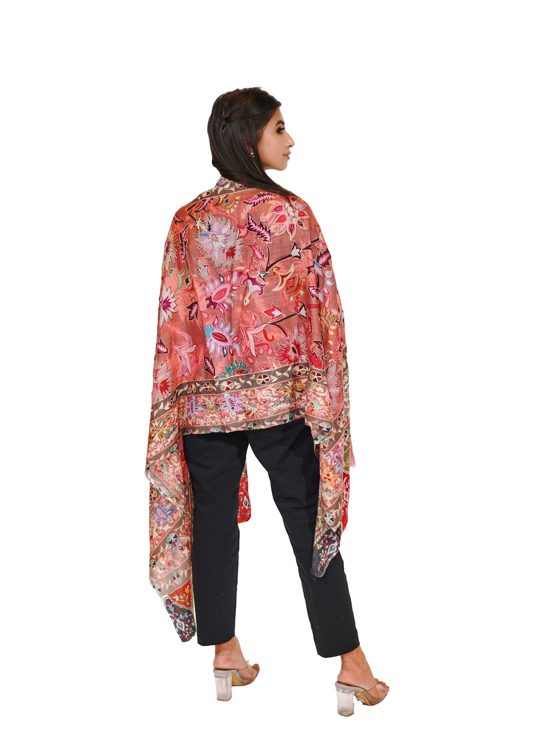 Heritage Embroidered Printed Stole for Women - Warm Peach