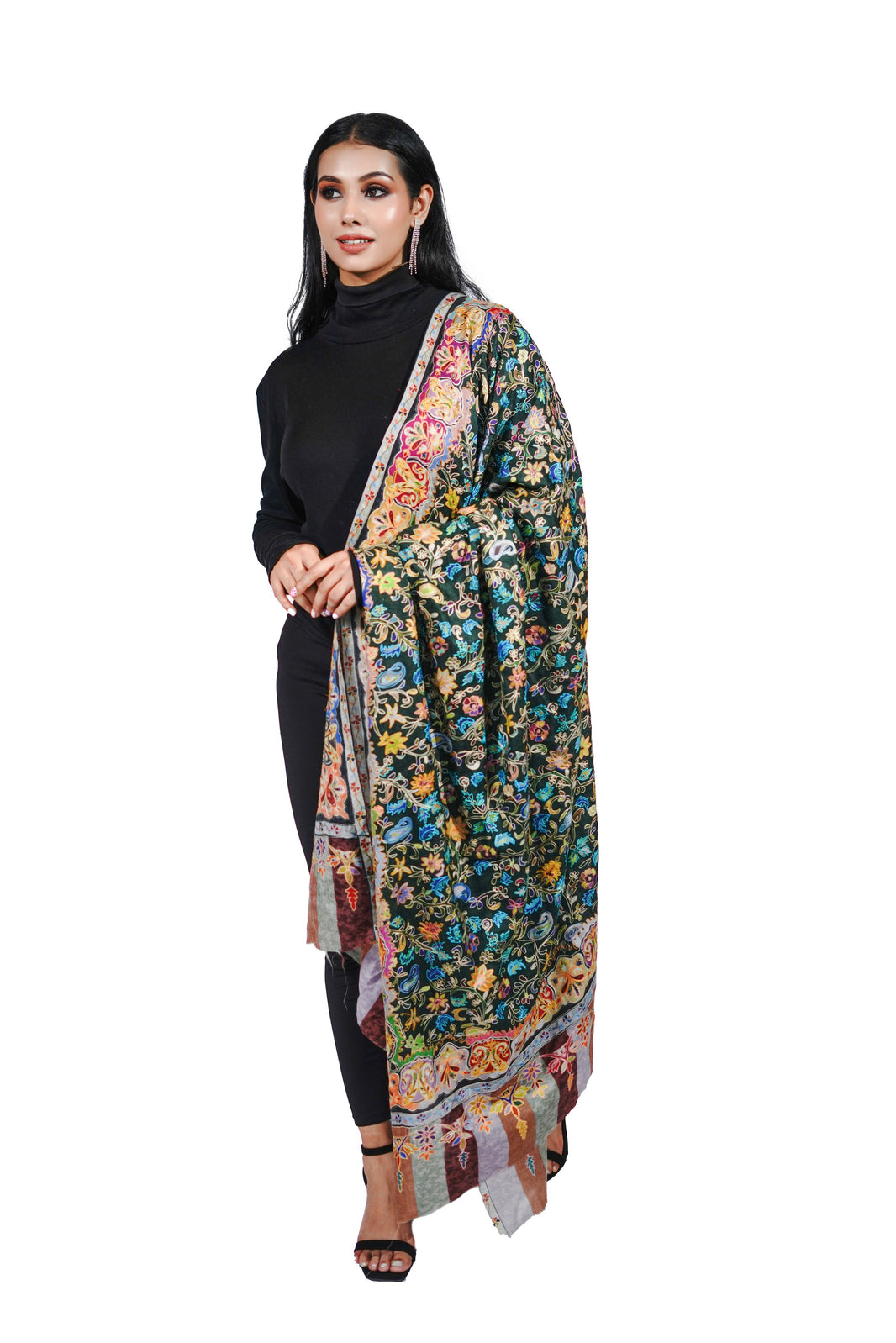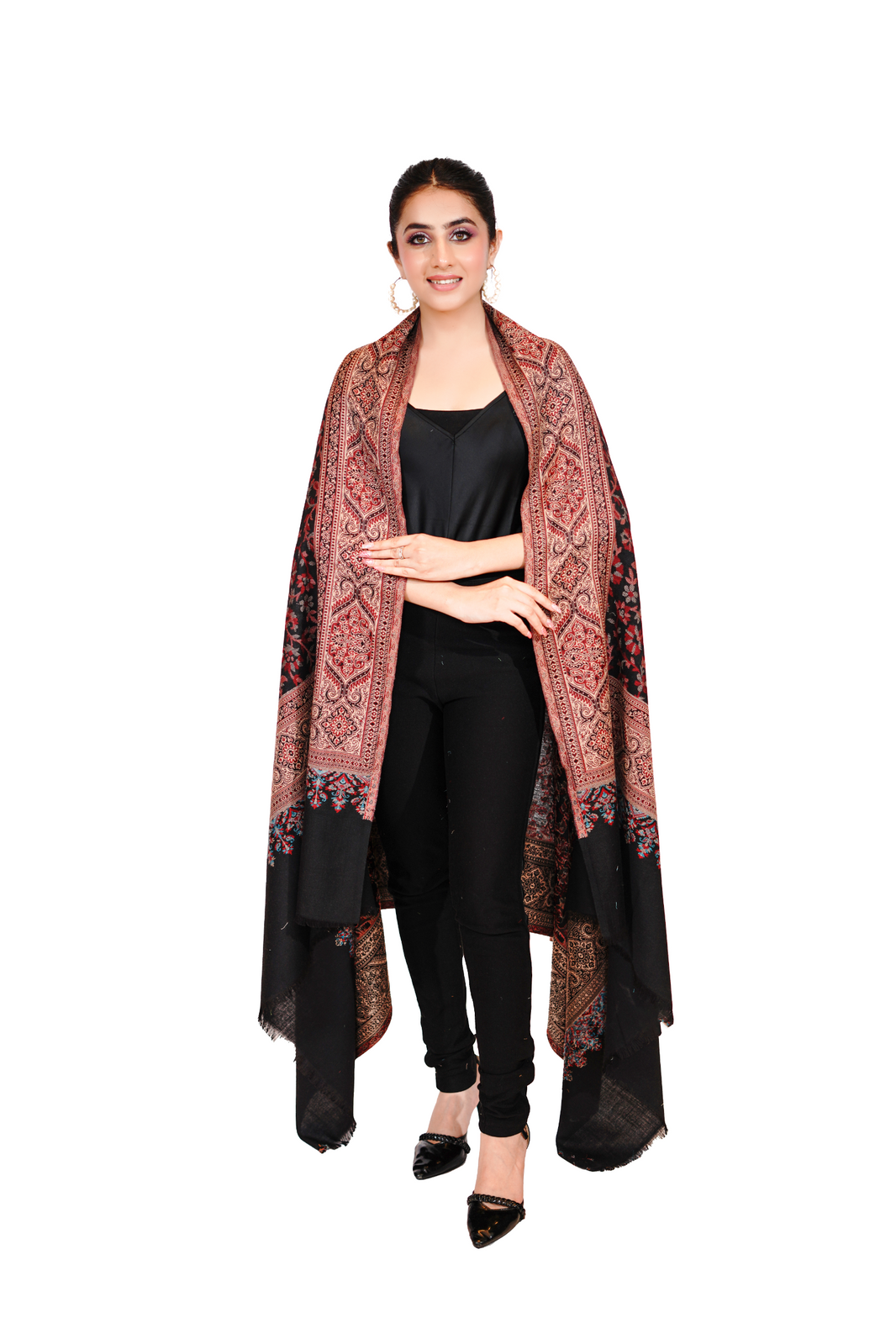 Faux Pashmina Traditional Jamawar Jaal Shawl - Classic Black