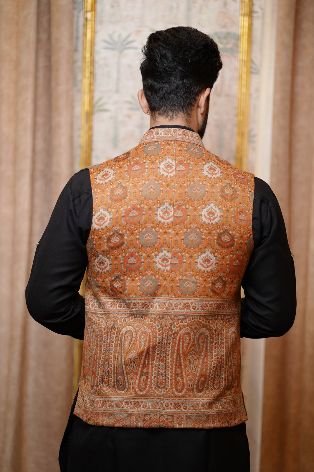 Unstitched Woollen Nehru Jacket for Men – Terra Cotta