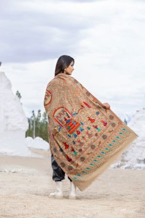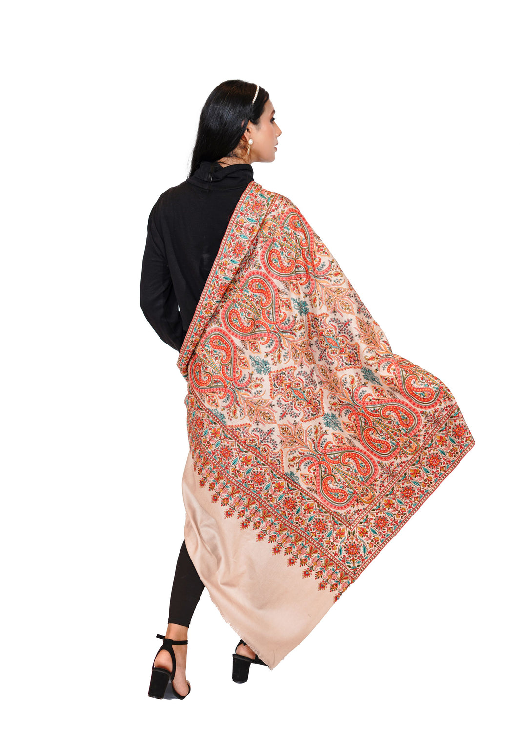 Heritage Mughal Darbaar Woolen Shawl for WHeritage Mughal Darbaar Woollen Shawl for Women - Soft Beige | Full Length, Extra Soft Woolomen - Soft Beige