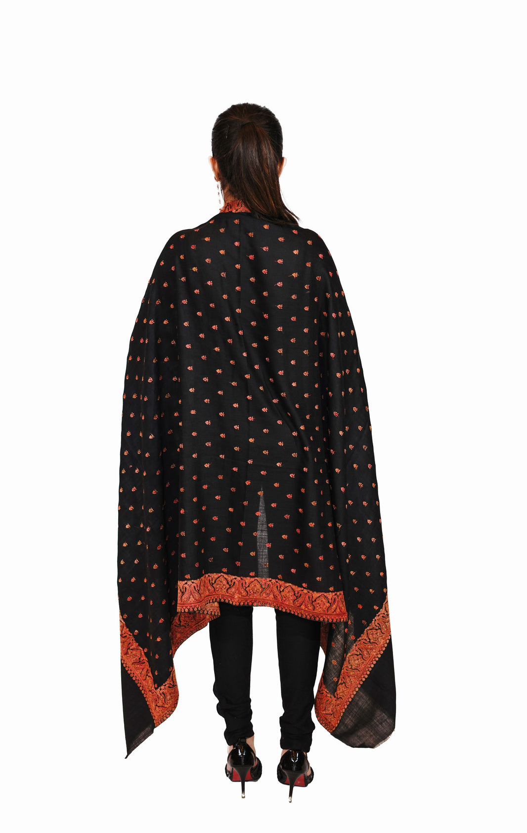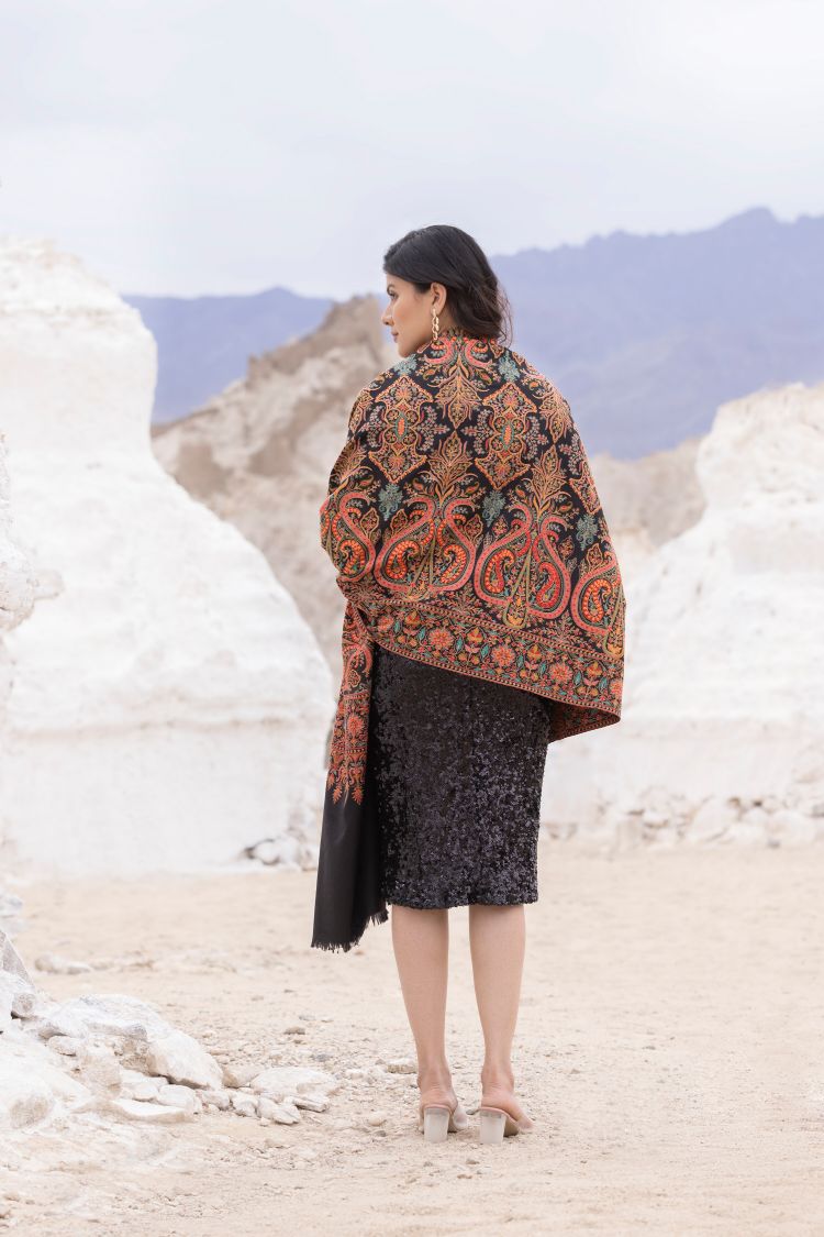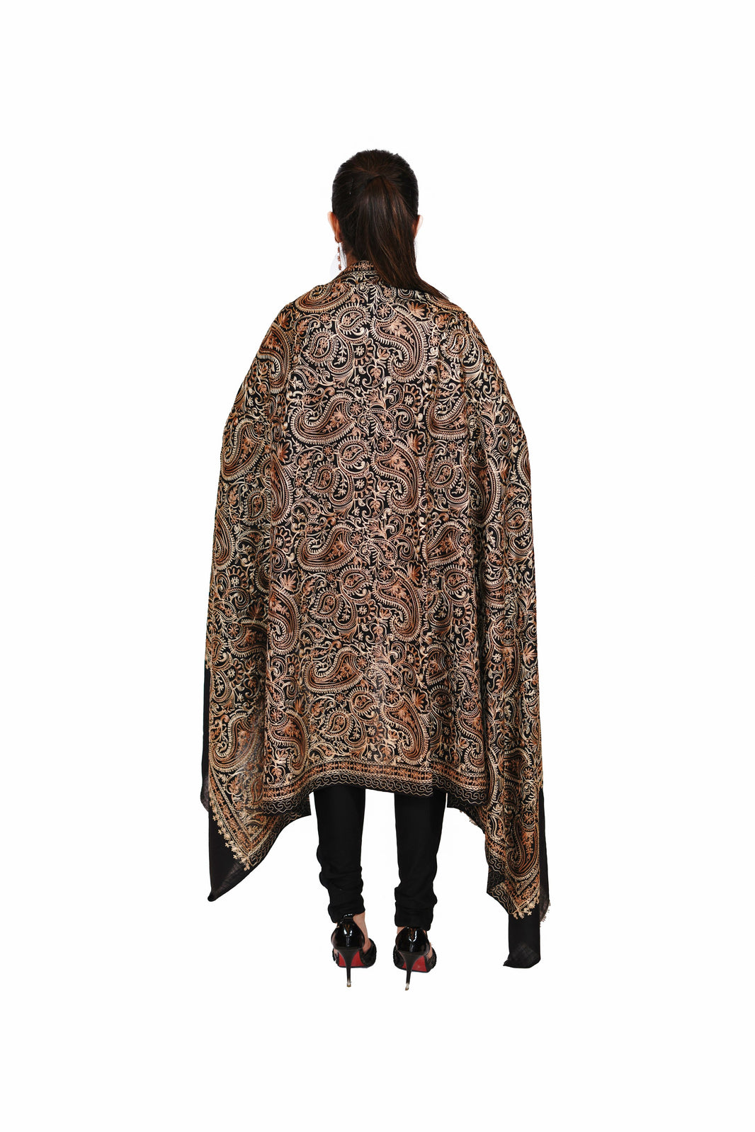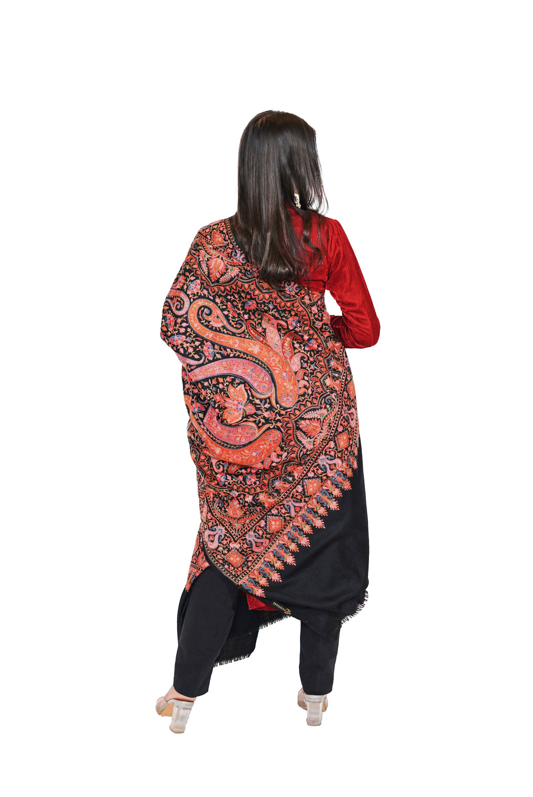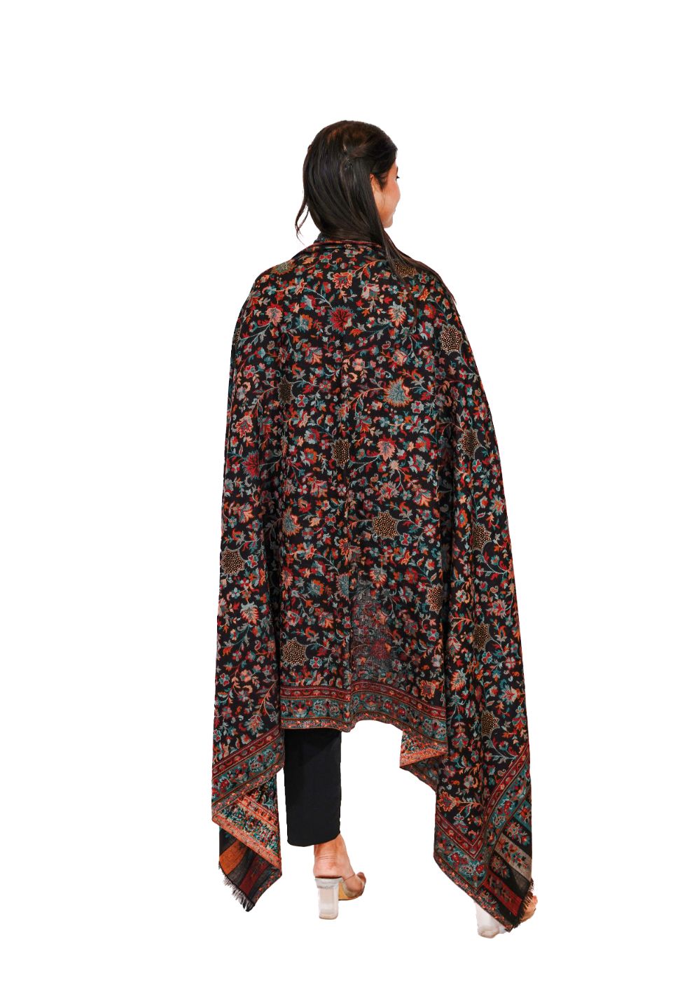 Heritage Aari Embroidery Woollen Shawl for Women - Classic Black