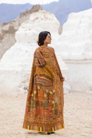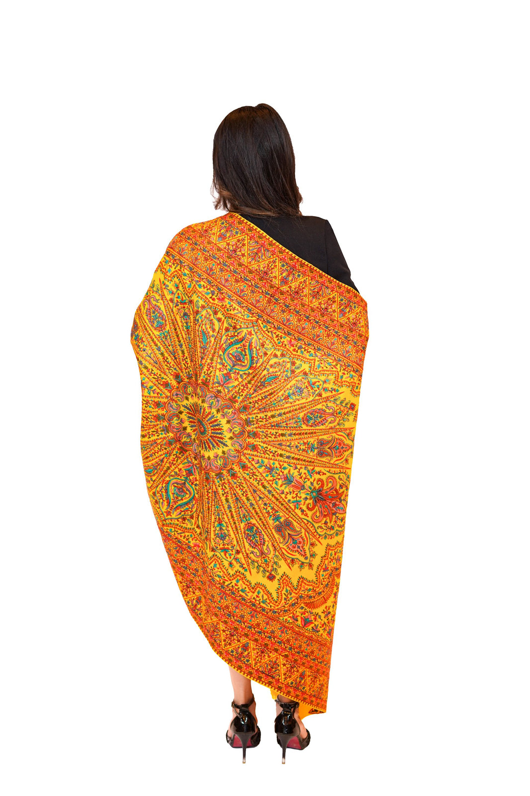 Heritage Mughal Darbaar Woollen Shawl for Women - Amber Yellow | Full Length, Extra Soft Wool