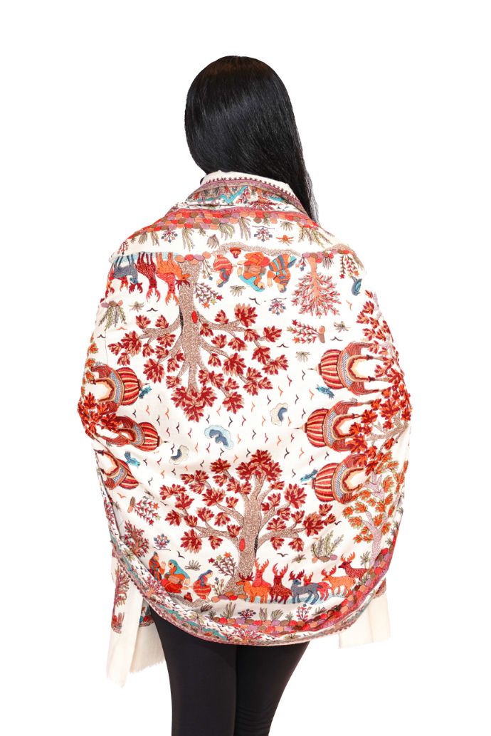 Heritage Mughal Darbaar Woollen Shawl for Women - Ivory | Full Length, Extra Soft Wool