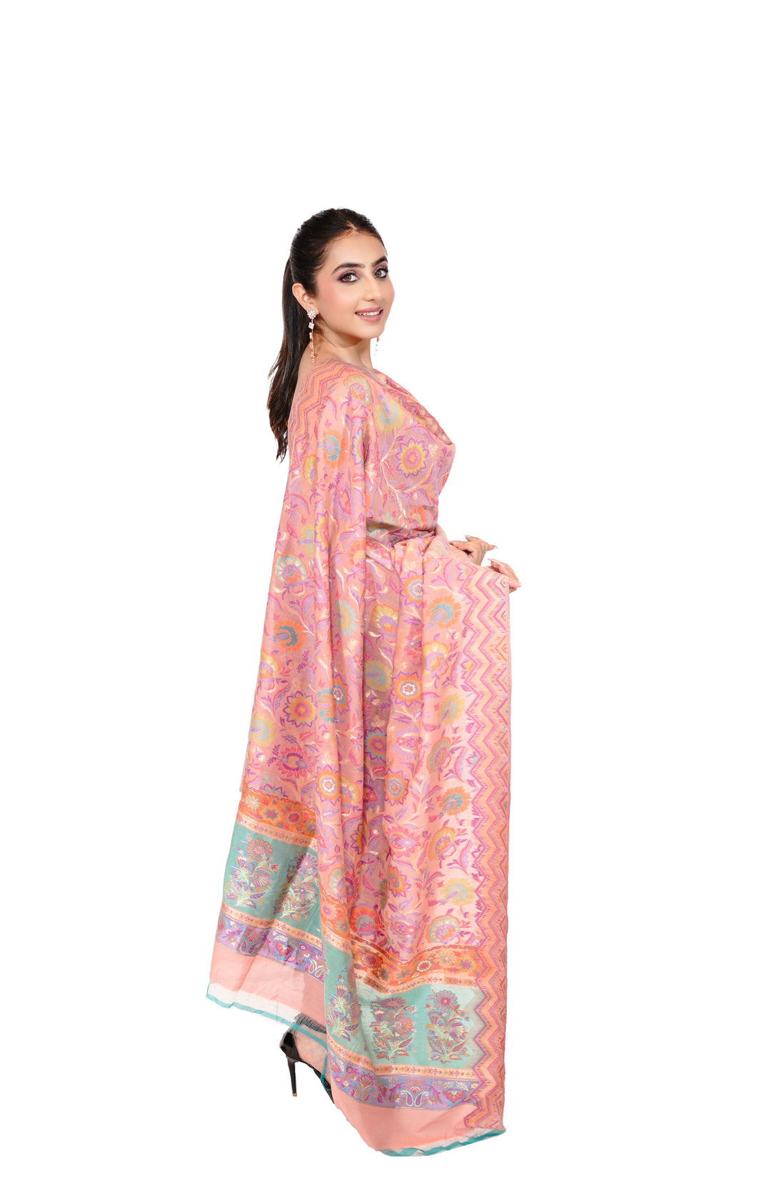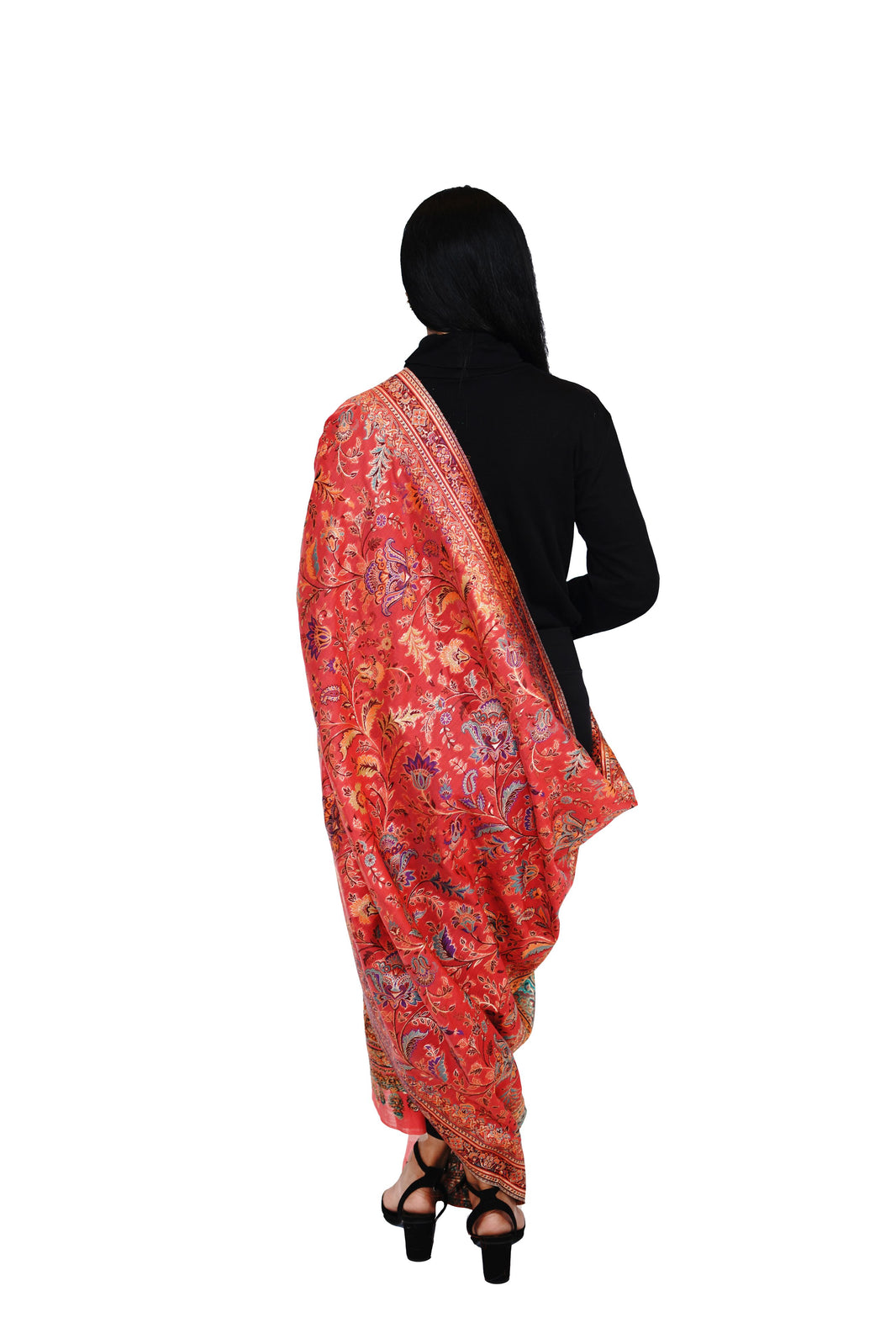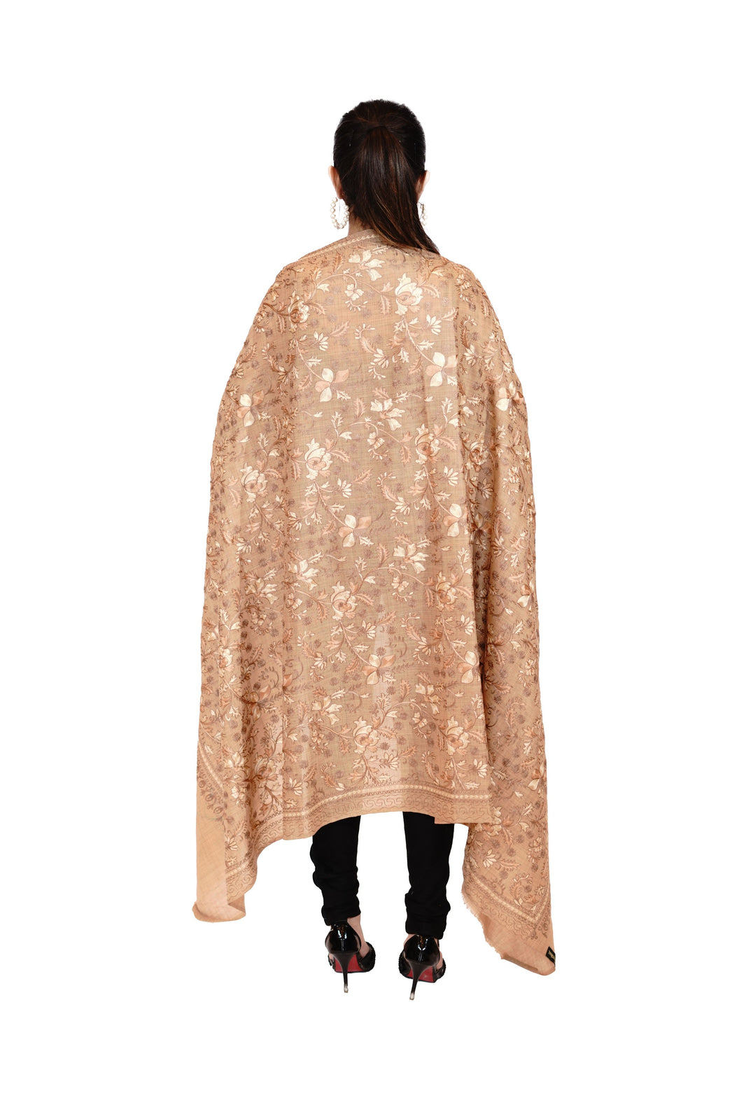 Heritage Aari Embroidery Woollen Shawl for Women - Peach