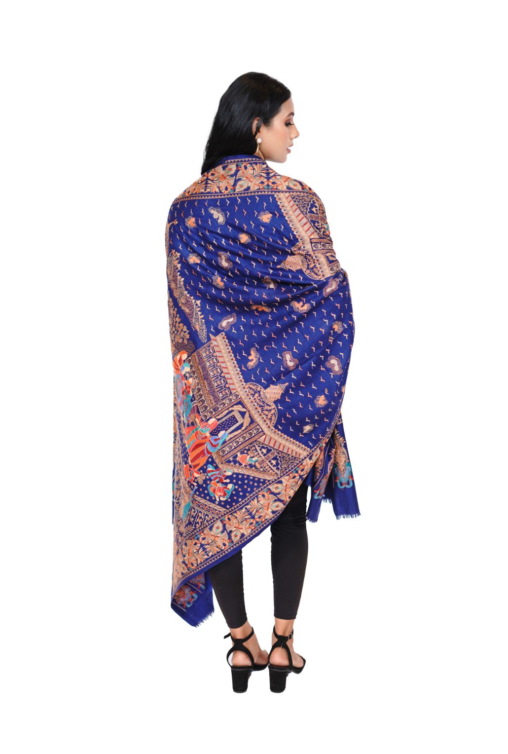 Heritage Mughal Darbaar Woollen Shawl for Women - Royal Blue | Full Length, Extra Soft Wool