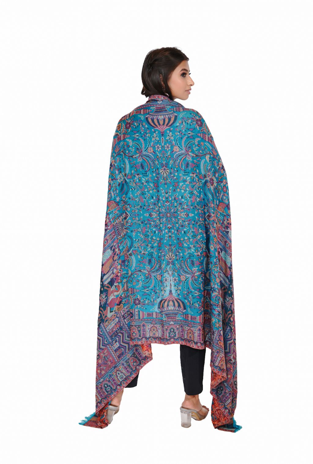 Heritage Mughal Darbaar Woollen Shawl for Women - Shimmering Blue | Full Length, Extra Soft Wool