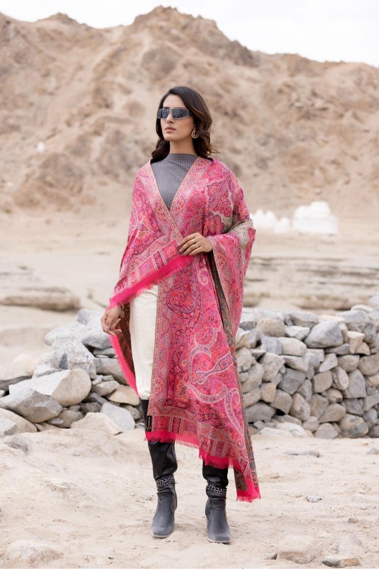 Heritage Jaal Jamawar Shawl for Women - Rich Pink | Full Length, Extra Fine Kashmiri Shawl