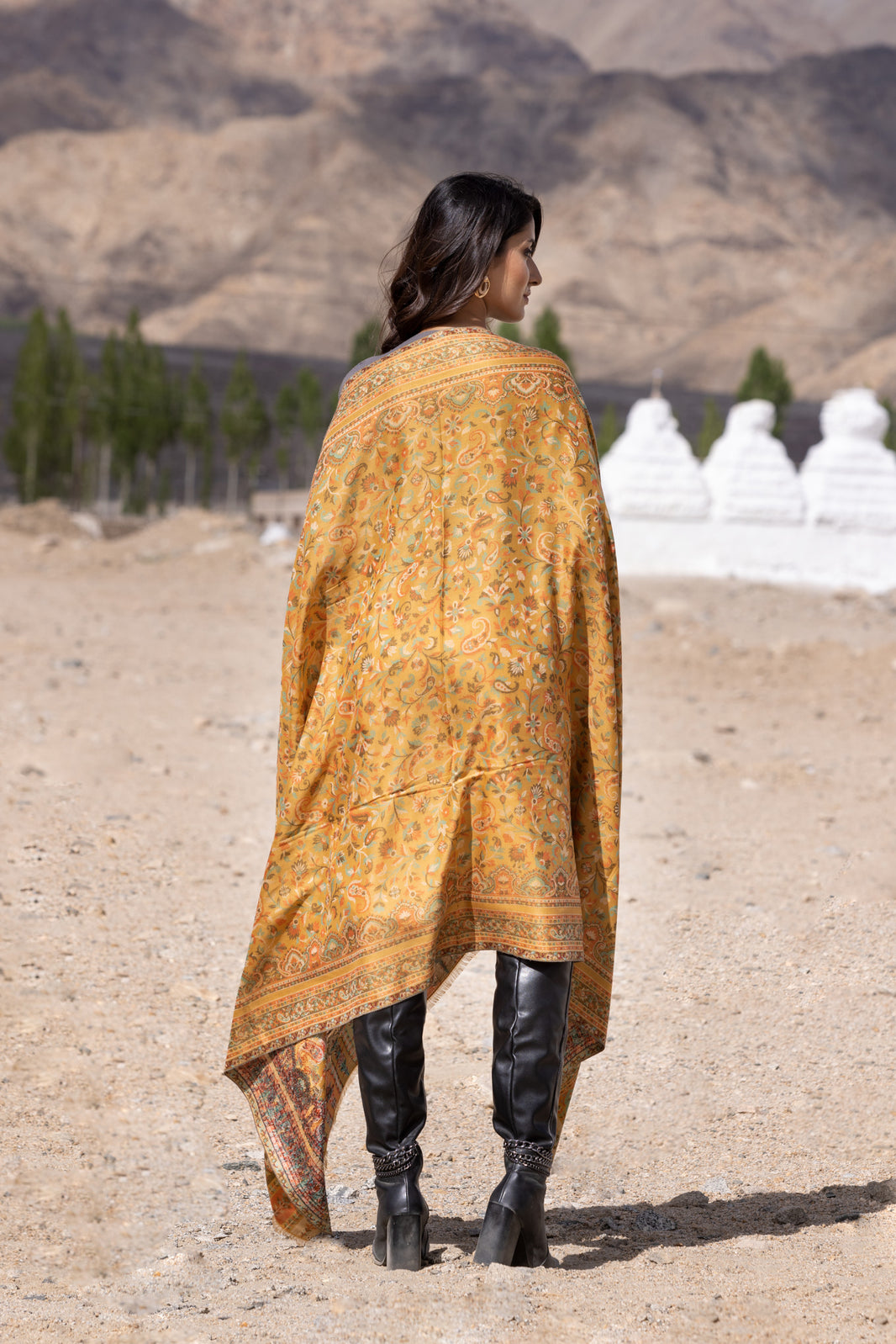 Traditional Bamboo Modal Yellow Kani Shawl for Women | Full Size, Soft & Eco-friendly