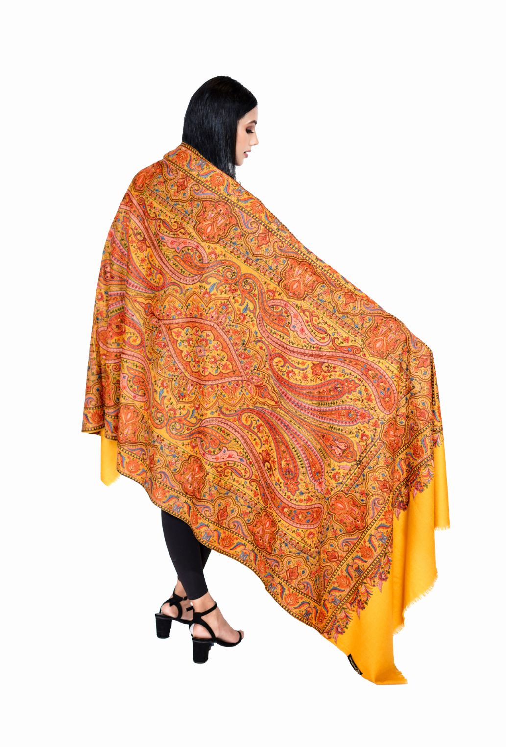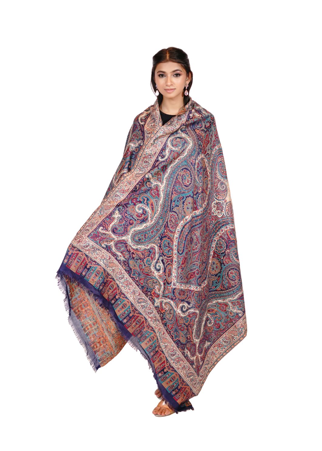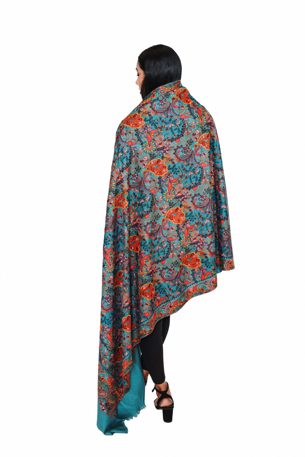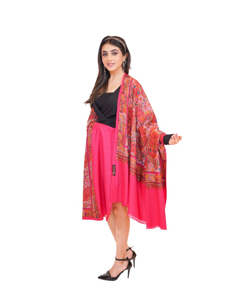 Printed Shawl with Aari Embroidery for Women - Pasiley Motifs | Full Length, Extra Fine Wool