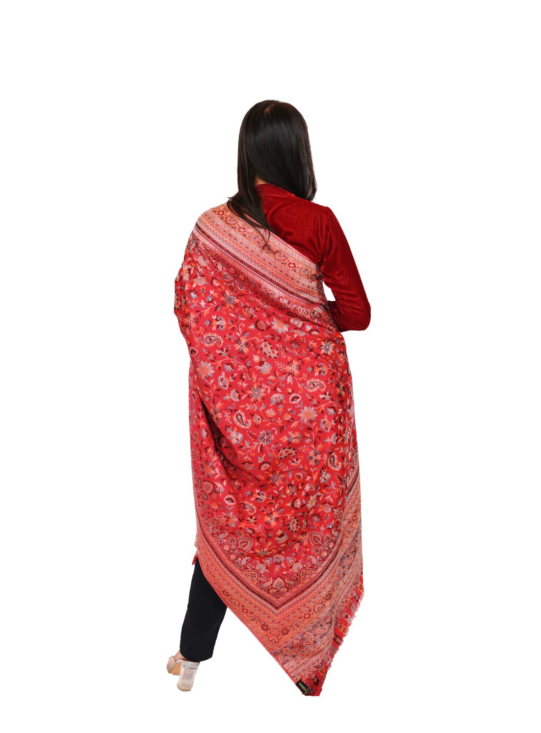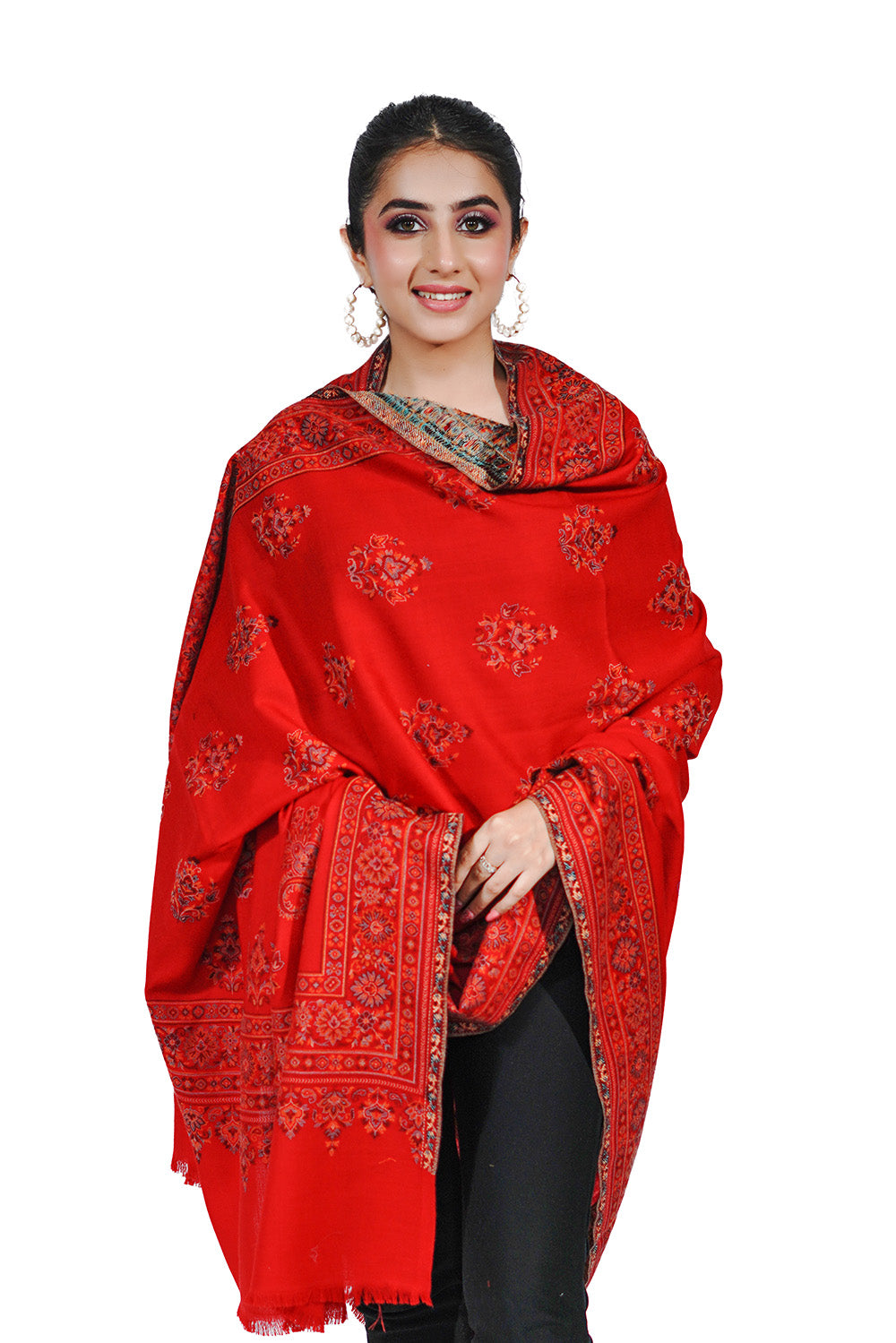Wool Blend Traditional Jamawar Kani Shawl for Women - Crimson Red | Full Size, Soft & Warm