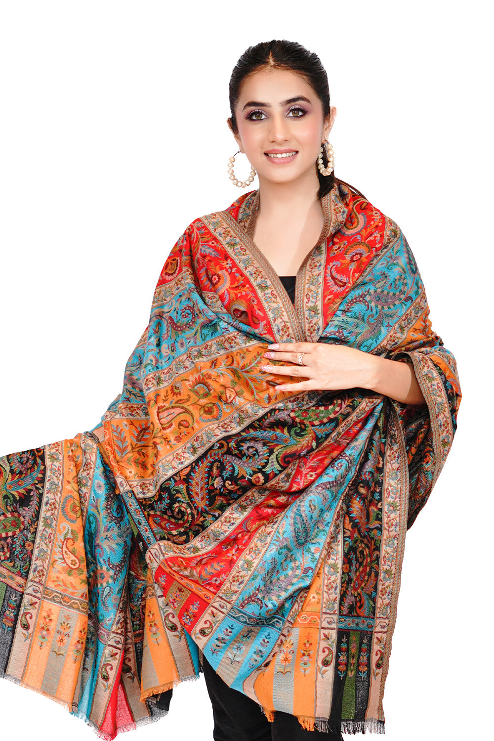 Faux Pashmina Traditional Jamawar Kani Shawl for Women - Colorful Medley | Soft & Warm