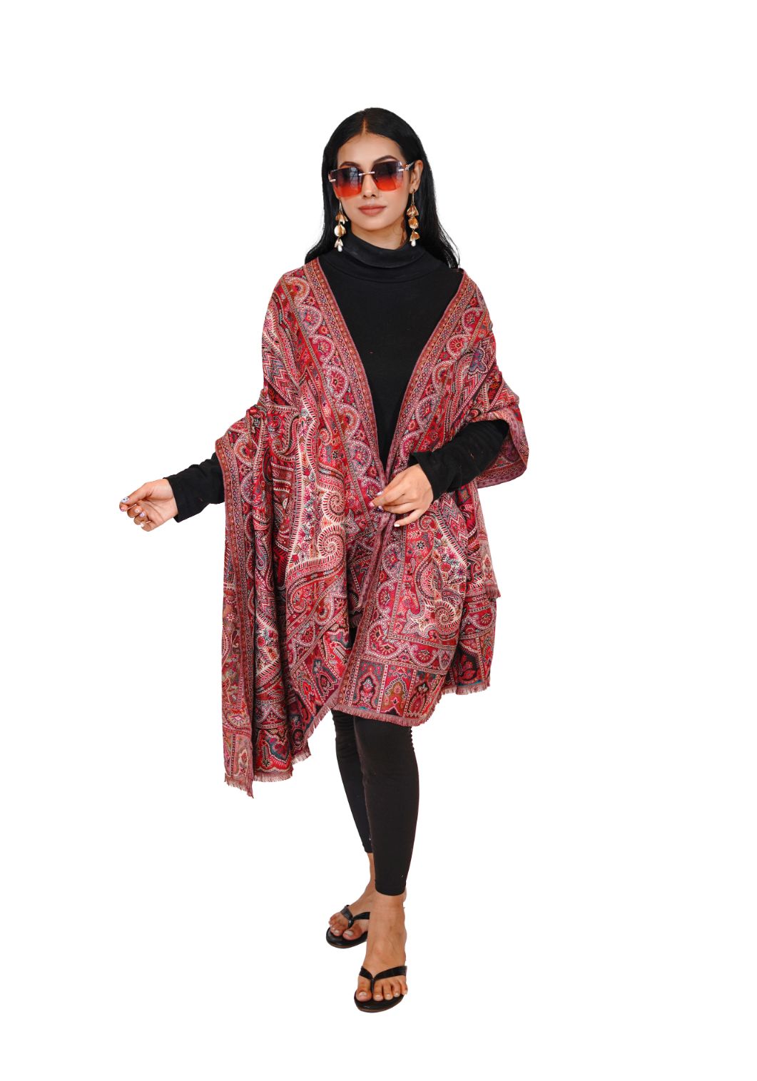 Faux Pashmina Red Traditional Kalamkari Shawl for Women | Full Size, Extra Soft