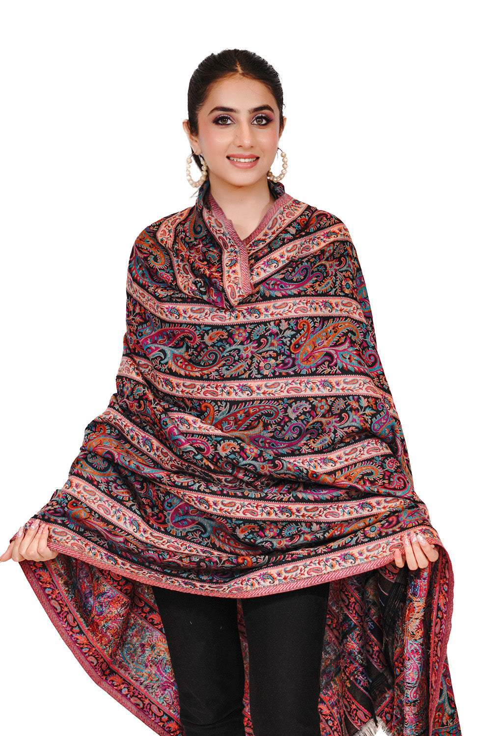 Faux Pashmina Traditional Jamawar Kani Shawl for Women - Classic Black | Soft & Warm