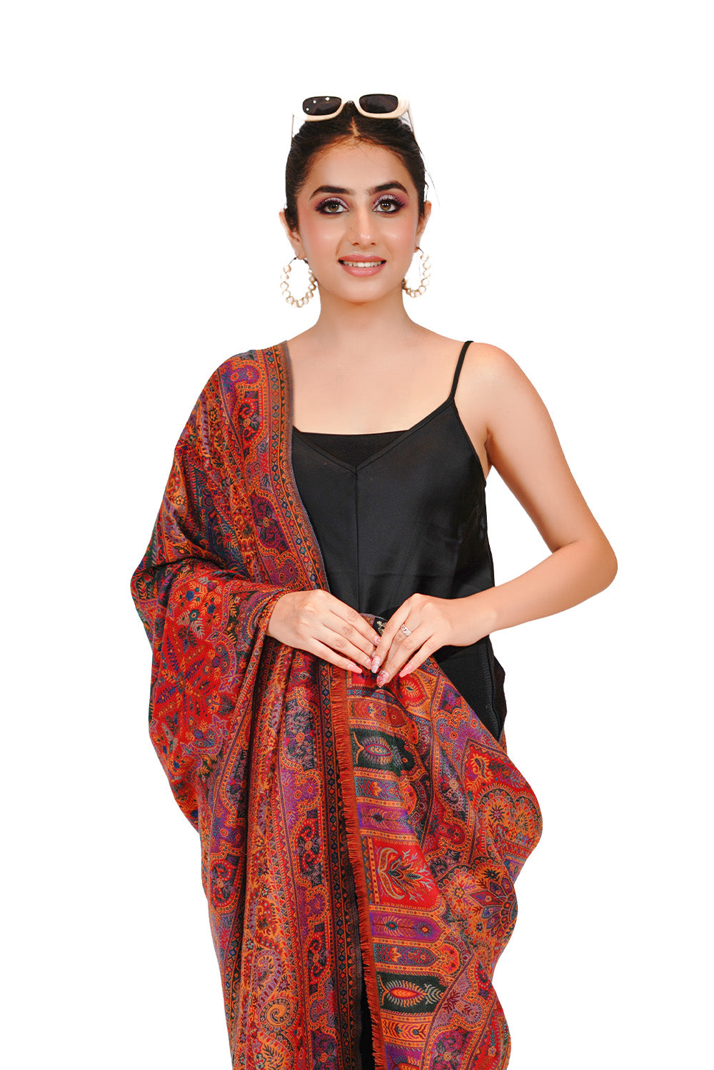 Faux Pashmina Traditional Jamawar Kani Shawl for Women - Multicolor Fusion| Soft & Warm