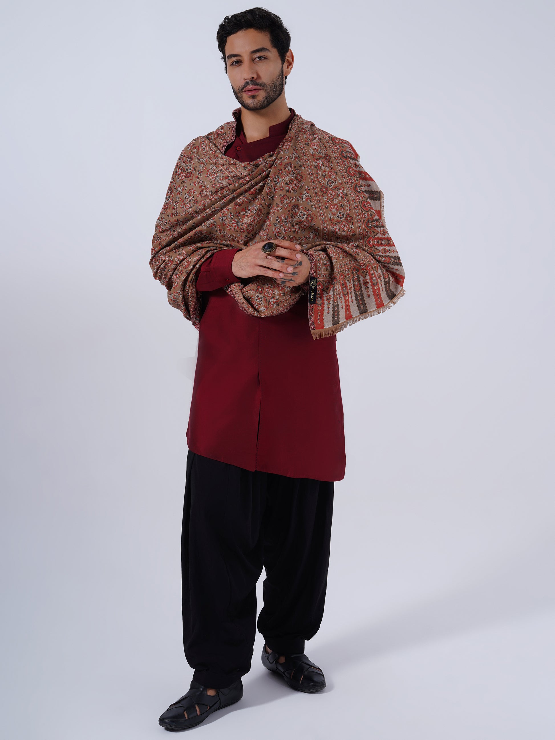 Crafted from high-quality faux pashmina, this shawl offers a sumptuous feel against the skin while providing warmth and comfort during cooler evenings or breezy outings. The versatile design allows for easy pairing with both casual and formal attire, making it an essential addition to any wardrobe. Whether draped over your shoulders for a polished look or wrapped snugly for added warmth, this shawl is not just an accessory but a statement piece that enhances your overall ensemble.