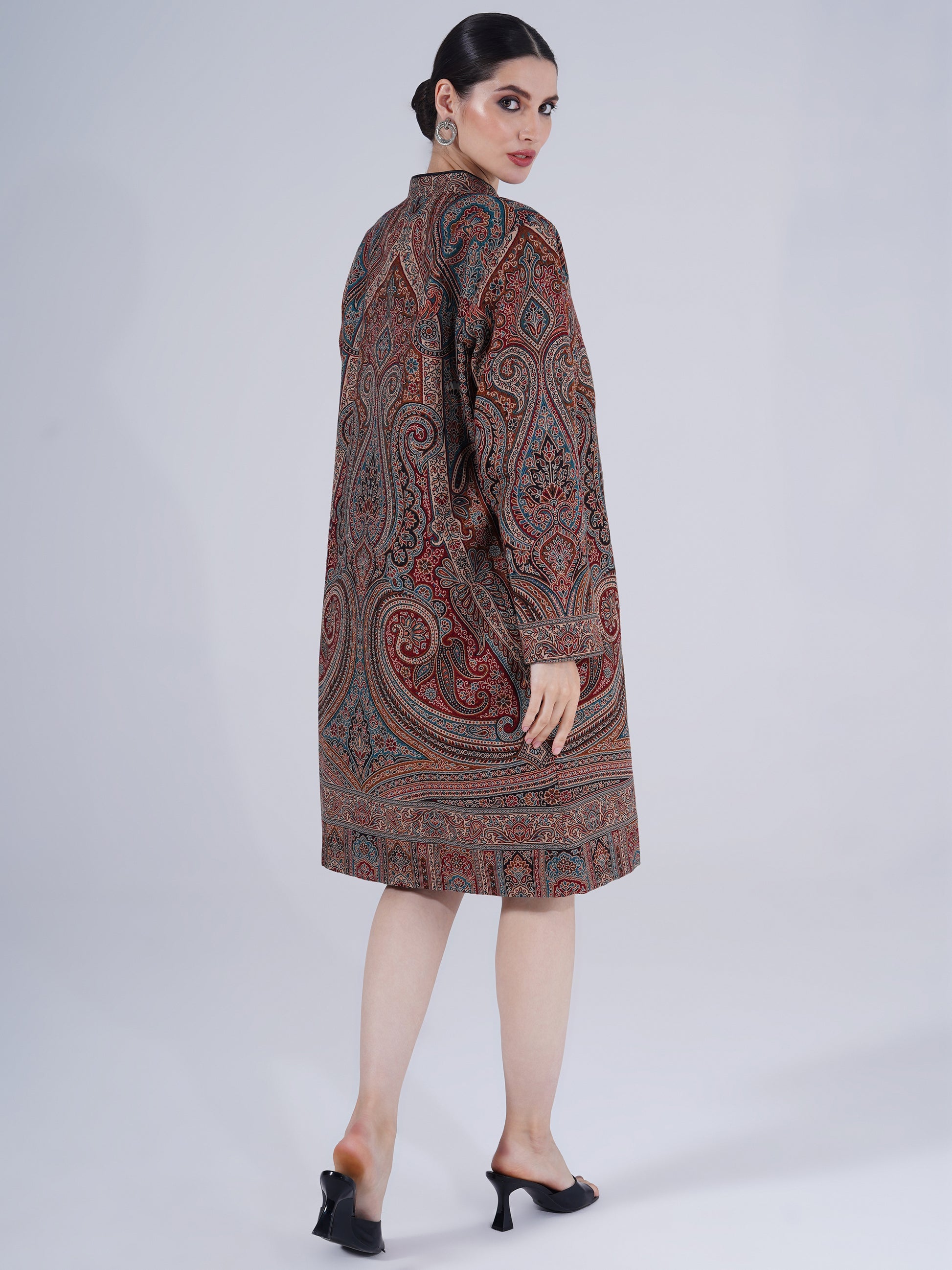 Elevate your wardrobe with Unstitched Vintage Jamawar Jacket, an exquisite piece that embodies the elegance of tradition and the innovation of modern fashion. Crafted from premium high-quality fabric, this jacket features a stunning Jamawar pattern, weaving history and artistry into every thread. Its versatile unstitched design allows for customized tailoring, ensuring a perfect fit that flatters every silhouette. The rich colors and intricate motifs not only add a touch of opulence to any outfit but also make it a statement piece for various occasions, from festive gatherings to intimate celebrations.