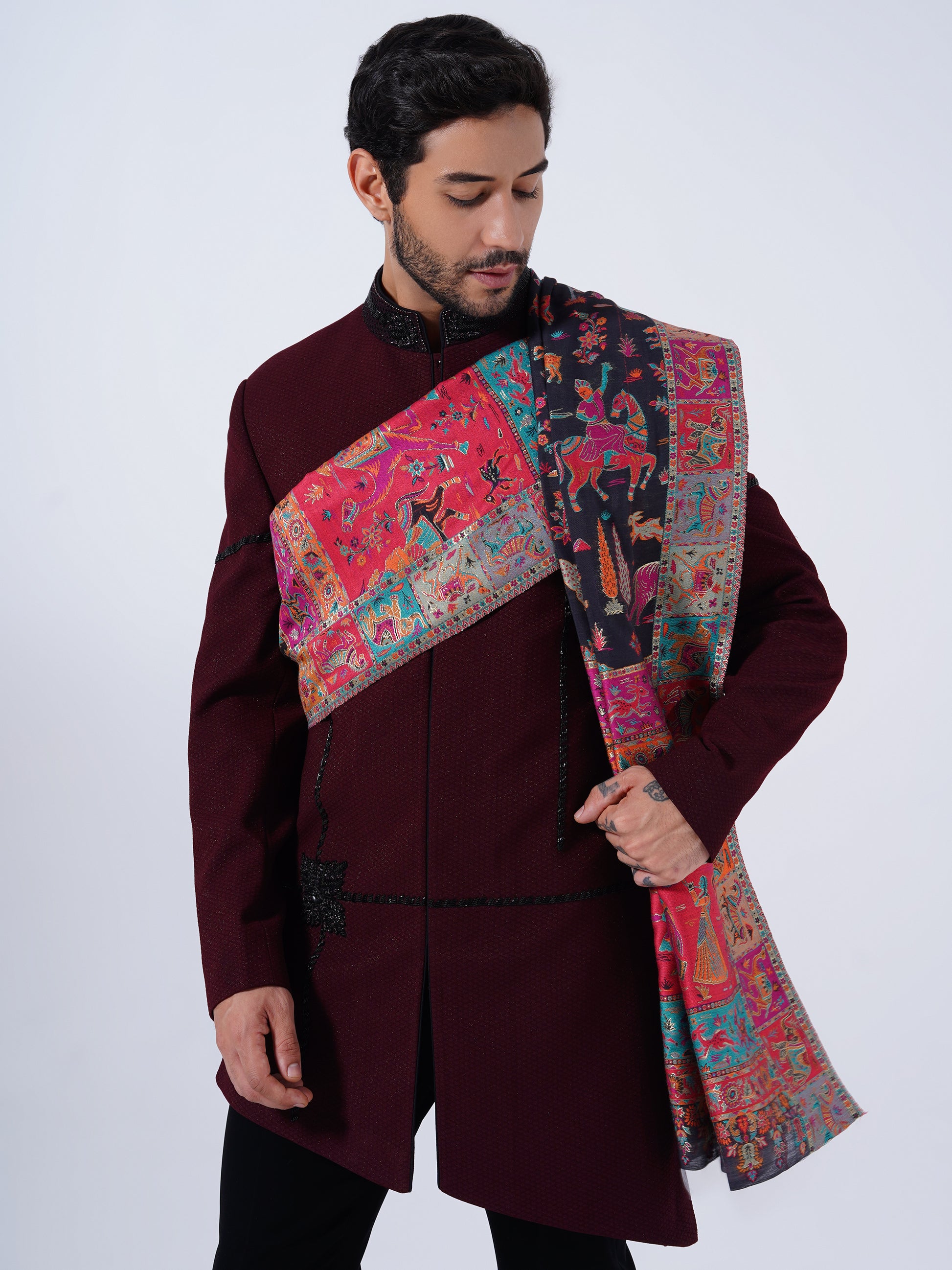 MEN'S TRADITIONAL -MUGHAL DARBAAR SILK SHAWL